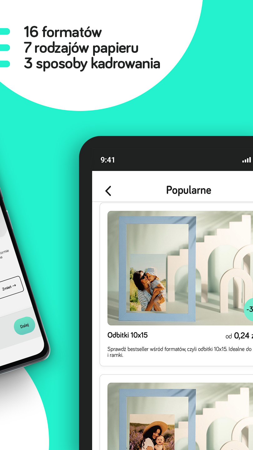 Choose photos directly from your phone gallery and order prints in various formats – from classic (10x15 cm), to square (10x10 cm and 13x13 cm), to large formats (70x100 cm).