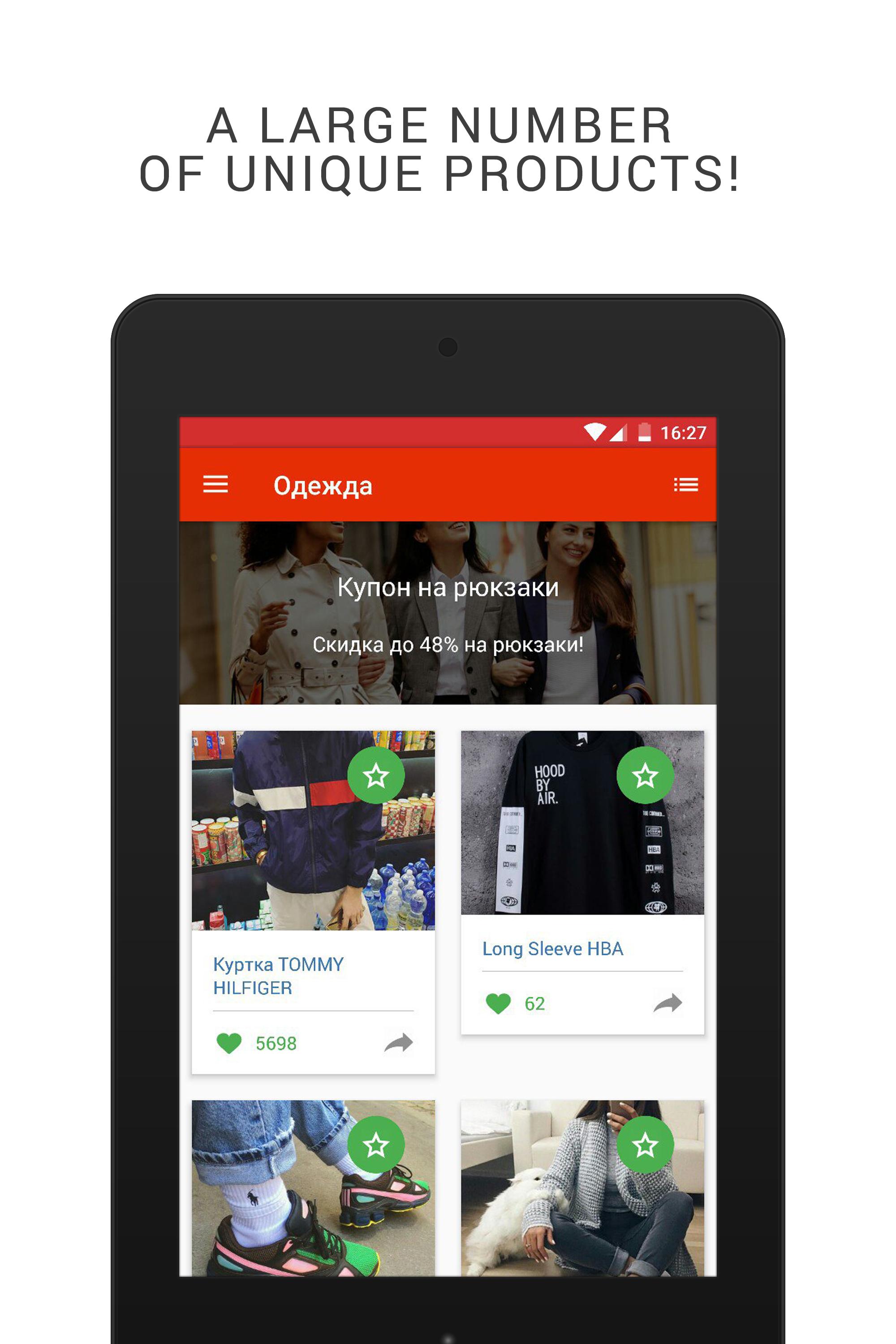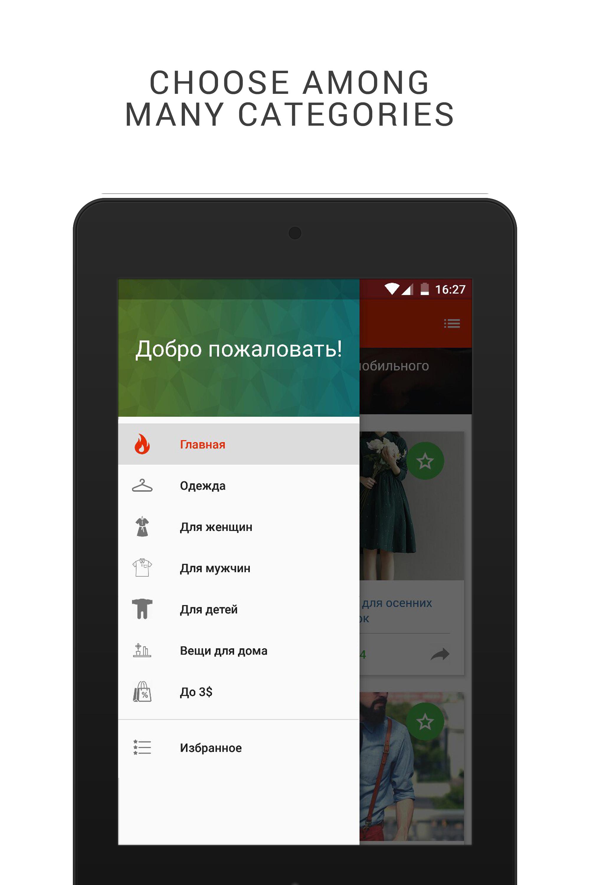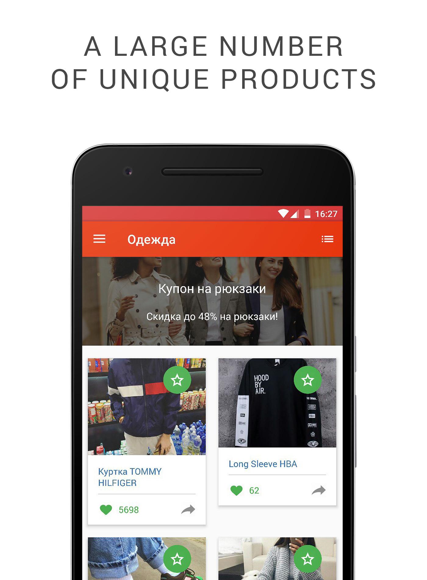 Find necessary goods, price comparison, shopping, save money - all of it together with the application Found on AliExpress (Alibaba)! Use coupons to buy goods on AliExpress. Mobile application «Found on AliExpress» is: - Unique stuff - Fashionable clothes - Clothing and footwear for women, men and children! - Things for your home (Housewares) - Goods up to $ 3 on AliExpress - Search for all categories - Best Stocks - Cashback for users throw service LetyShops from the most popular sites (GearBest, Booking.com, Lamoda, Wildberries, asos, ebay, iherb, tinydeal and others) - Share your goods via social networks (WhatsApp, Facebook, Twitter, Gmail, WeChat, Line, E-mail, SMS, Vkontakte) to your friends! Buying the most interesting and useful things: • In our application, we collected a lot of useful things and interesting things that you will definitely come in handy! Fashion & Clothing • Clothing, footwear and accessories for men women and even children! Select the desired category and choose from a variety of products. House, garden and orchard • Interior design, household goods, garden tools. A huge number of products for your home, why pay more? Book with us! Easy to view, categories, proven sellers, favorites, best quality and interesting goods! Join us on AliExpress.