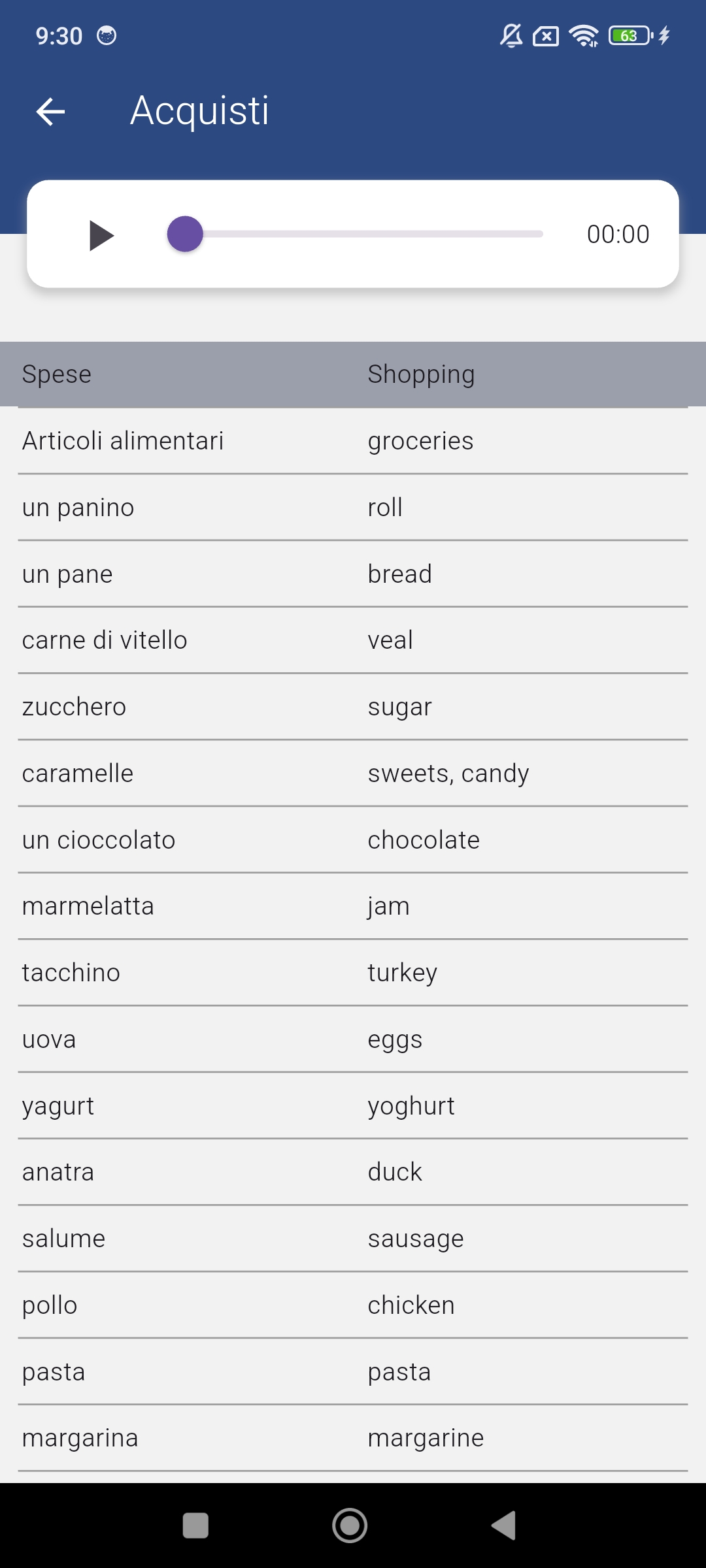 * App is for people who know ITALIAN and want to learn the basics of ENGLISH language.