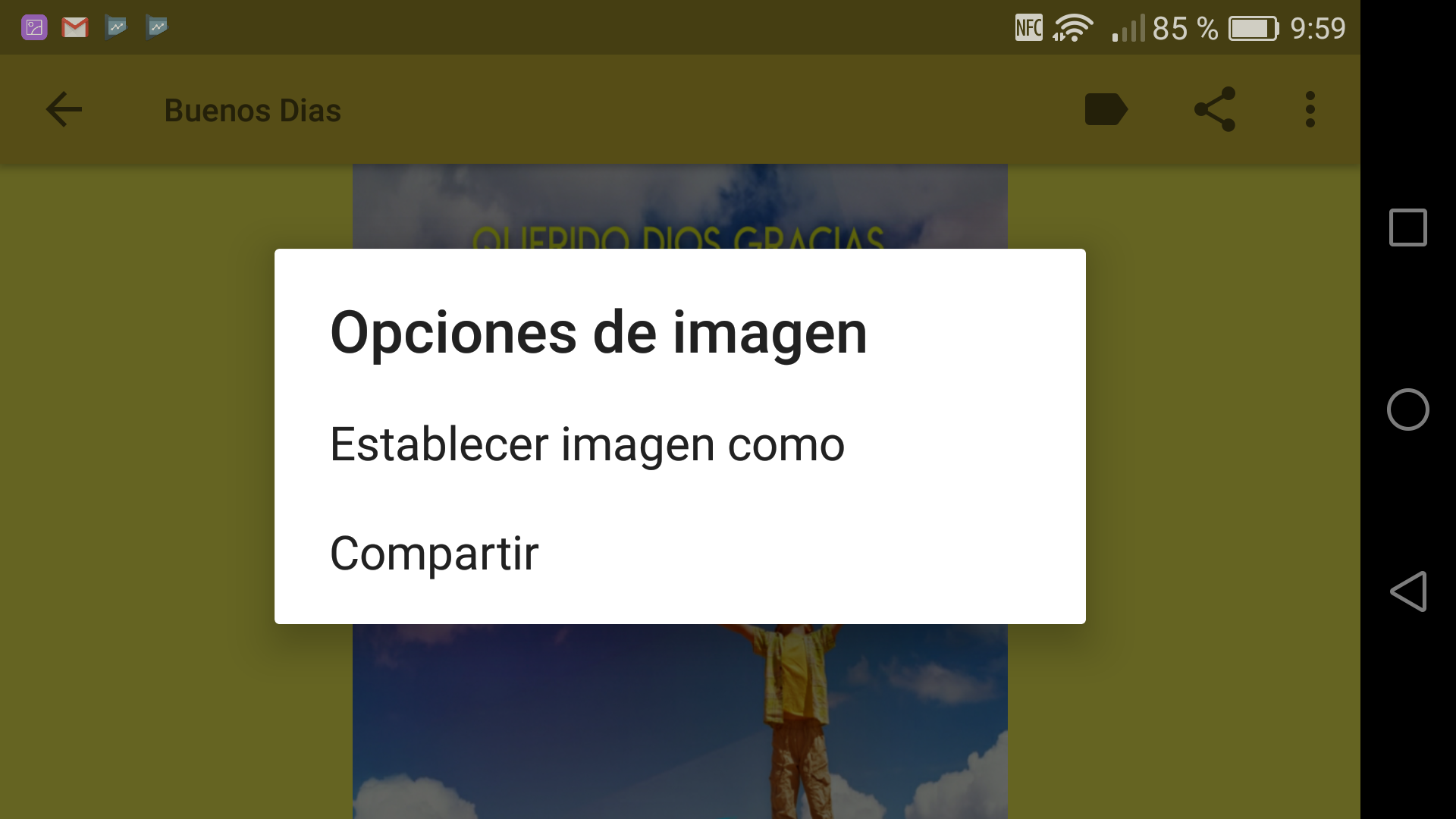 Hemos añadido una galería con nuevas imágenes de bendiciones de Buenos Dias y una estación de radio con música cristiana. Descarga a tu galería tus imágenes favoritas con la opción establecer imagen como...
