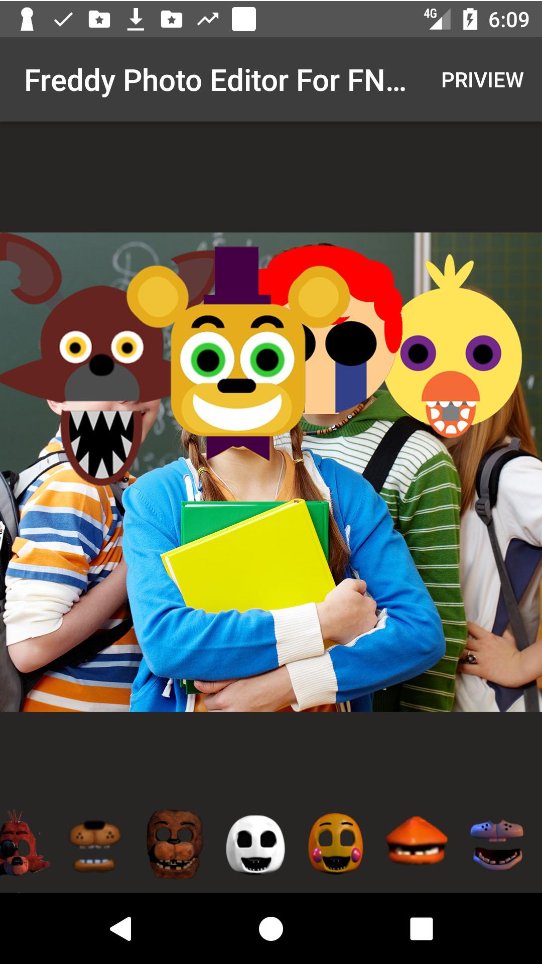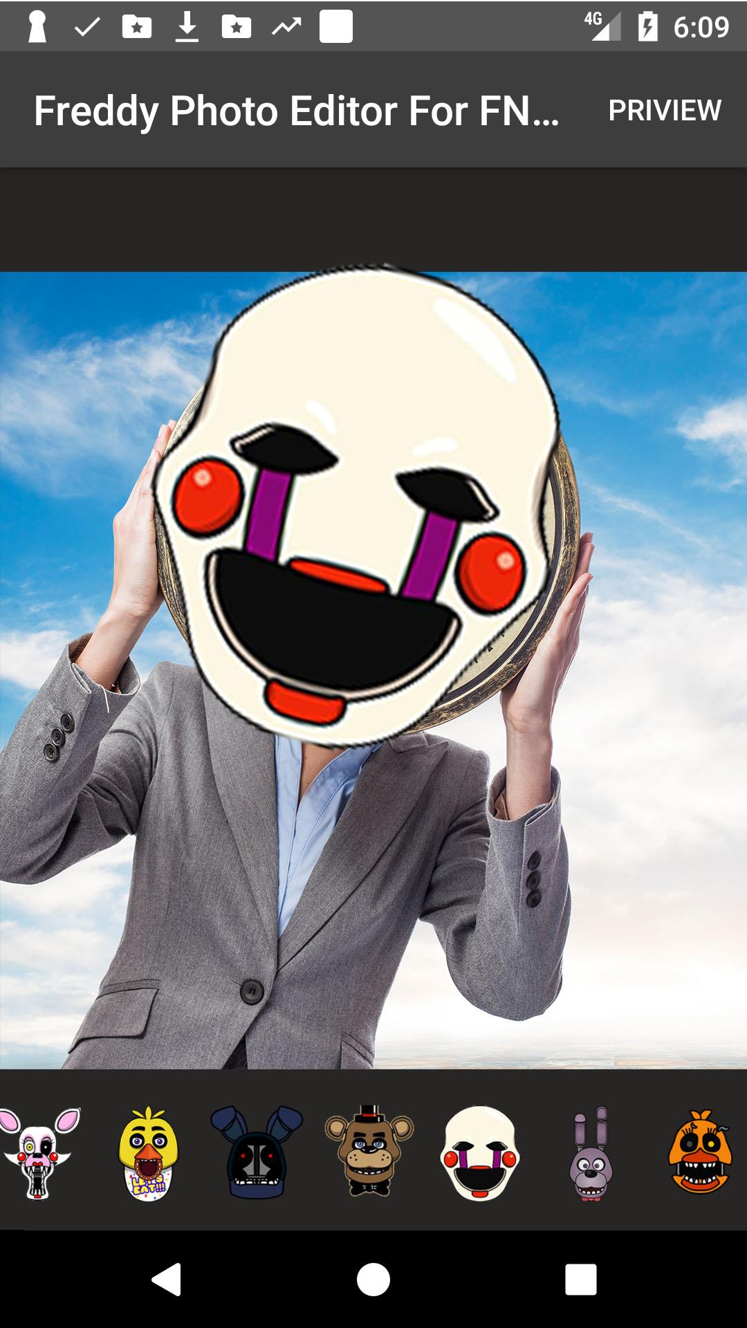 Would you like to see your self a fnaf scary face and spooky mask ? Do you want to be scary Freddy masks ? Photo Editor for Fnaf is a Effects editor for make and Editing Face scary Mask and horror effects easily.