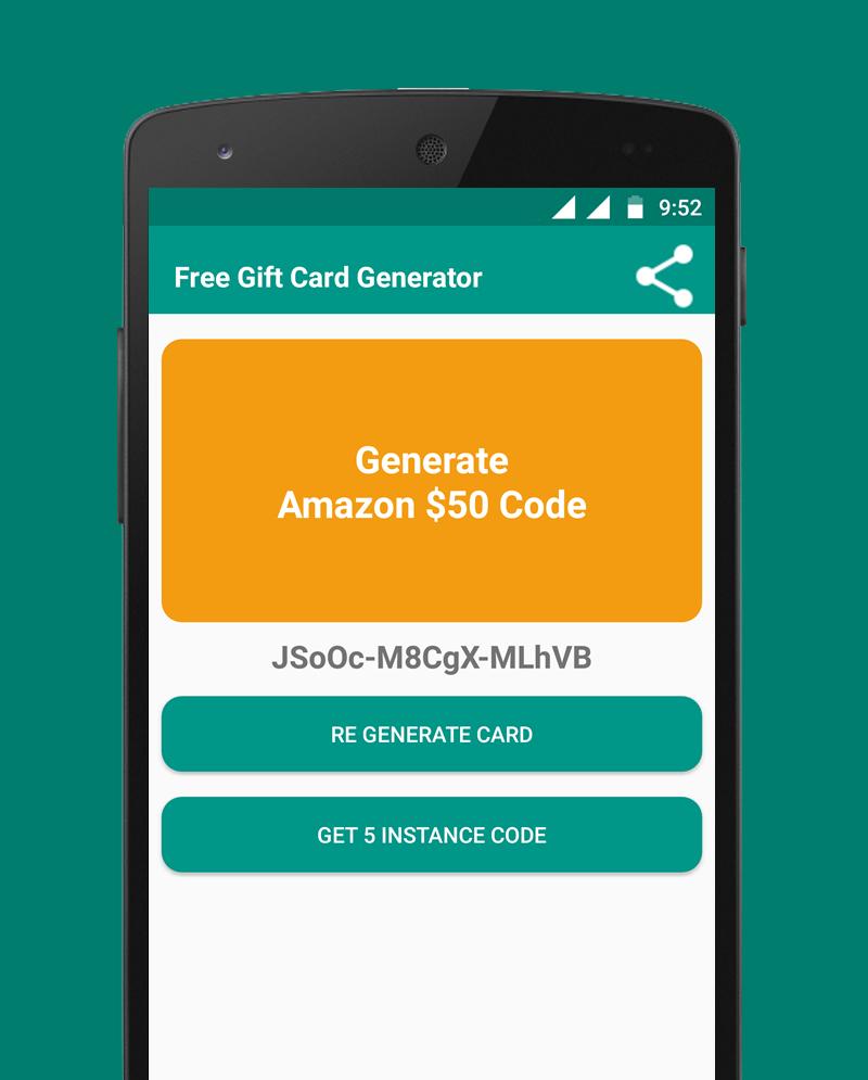 Now We Are Presenting Best Online Gift card Generator App for Android. With Our Online Gift Card Generator app you can Generate Free Gift Codes and Earn Free Discounts and Vouchers We are Generating Codes for Game, Commercial Website, Shopping website, Online Store, Wallet, and Google Play or Get Free Discount with Our Online Dummy Gift card Generator App Free Gift Card Generator That Will Easily generates Your Favorite Dummy Gift Card. We Support a variety of Different code For the Following Apps and Following are Discount Price or Voucher you can earn: # Free Amazon Gift card Generators # Free Spotify gift card Generator # Free GameStop Gift card Generators # Free Steam Wallet Gift Card Generators # Free Google Play Gift card Generators # Free EBay Gift Card Generators # Free ITunes Gift Card Generators # Free Game Twist Voucher Gift Card Generators # Free Xbox Gift Card Generators # Free PlayStation Gift Card Generators Discount Price and Voucher • $10, $15, $25 With Our Amazon Gift Card Generator • 3, 6, 12 Month With Our Spotify Gift card Generators • $25, $50 With Our GameStop Gift Card Generator • $20, $50, $100 With Our Steam Wallet Gift Card Generators • $10, $25, $50 With Our Google Play Gift Card Generators • $25, $50, $100 With Our EBay Gift Card Generators • $15, $25, $50 With Our ITunes Gift Card Generators • 10K, 50K, 100K With Our Game Twist Vouchers Gift Card Generators • $25, $50, $100 With Our Xbox Gift Card Generators • $10, $20, $50 With Our PlayStation Gift Card Generators Code Generated is dummy code. It may or may not work.