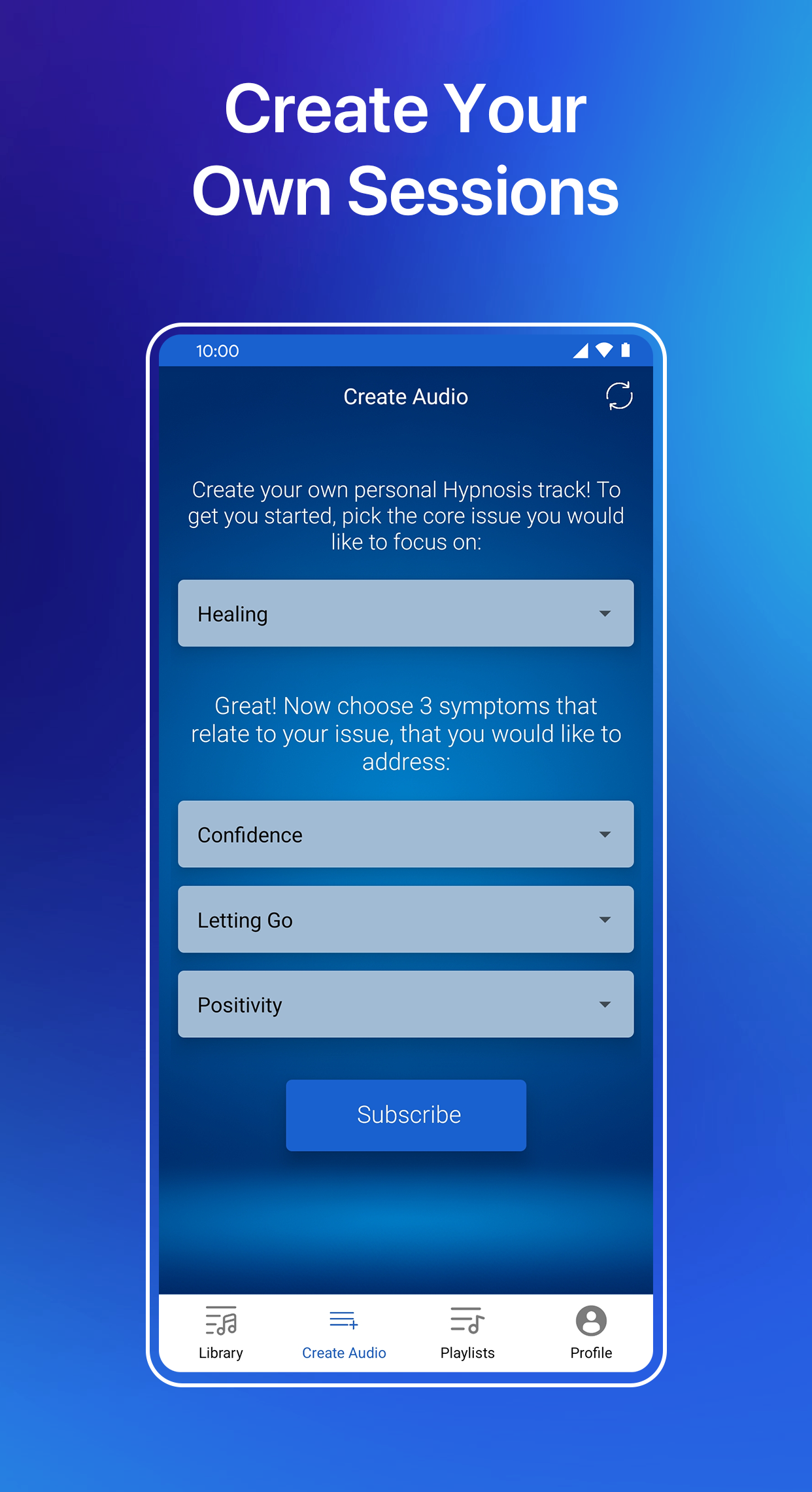 ✓ Custom Hypnosis Builder – Design your own sessions tailored to your goals