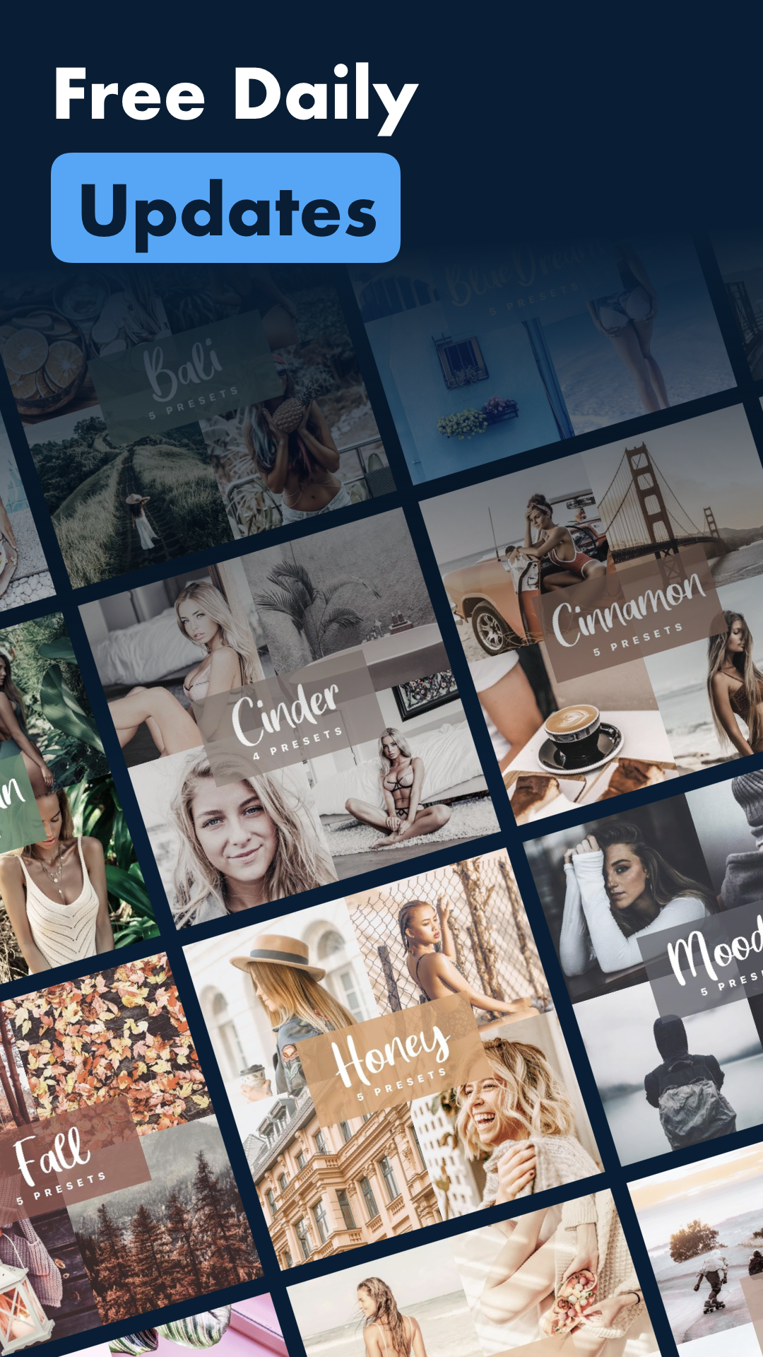 Presets for Lightroom (Package Name: com.presets) is developed by LR & CC MOBILE PRESETS and the latest version of Presets for Lightroom Mobile 1.0.7 was updated on September 29, 2021. Presets for Lightroom Mobile is in the category of Photography. You can check all apps from the developer of Presets for Lightroom Mobile and find 71 alternative apps to Presets for Lightroom Mobile on Android. Currently this app is for free. This app can be downloaded on Android 5.0+ on APKFab or Google Play. All APK/XAPK files on APKFab.com are original and 100% safe with fast download.