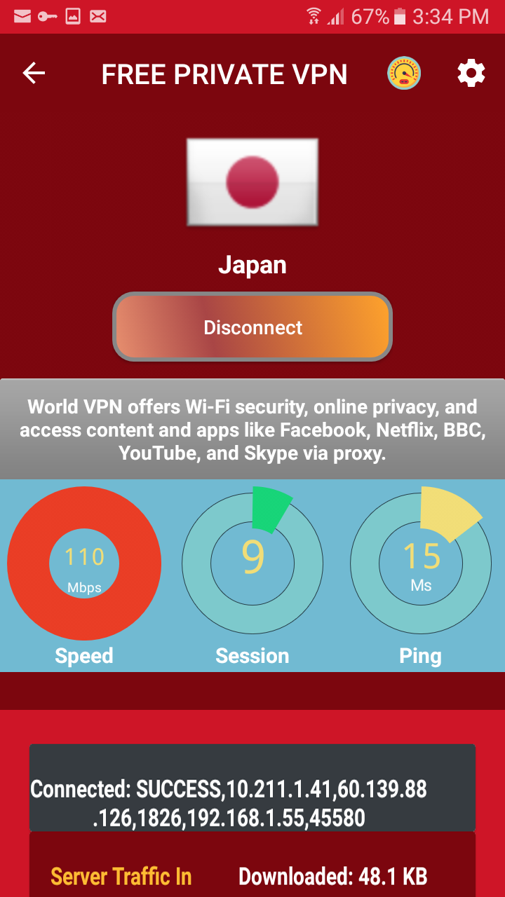 FREE PRIVATE VPN (Package Name: com.worldvpn.freevpn) is developed by Tarusheweba and the latest version of Free Private VPN-Unlimited Free VPN Proxy & Wi-Fi 3.3 was updated on February 25, 2019. Free Private VPN-Unlimited Free VPN Proxy & Wi-Fi is in the category of Tools. You can check all apps from the developer of Free Private VPN-Unlimited Free VPN Proxy & Wi-Fi and find 78 alternative apps to Free Private VPN-Unlimited Free VPN Proxy & Wi-Fi on Android. Currently this app is for free. This app can be downloaded on Android 4.1+ on APKFab or Google Play. All APK/XAPK files on APKFab.com are original and 100% safe with fast download.