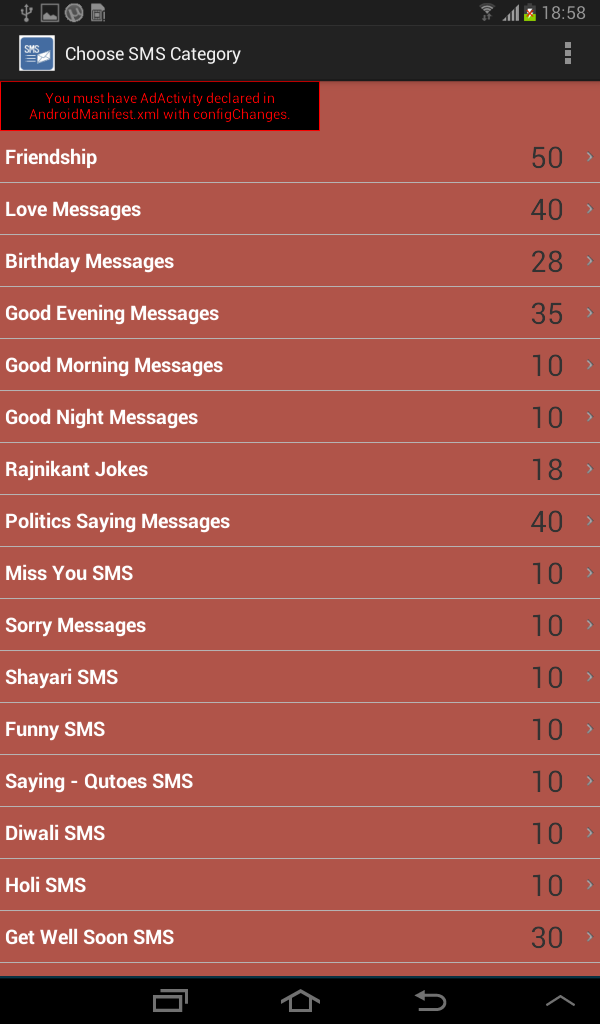 Free SMS Collection (Package Name: san.kim.freesmsindia) is developed by kimothis and the latest version of Free SMS Collection 2.8 was updated on June 20, 2015. Free SMS Collection is in the category of Communication. You can check all apps from the developer of Free SMS Collection. Currently this app is for free. This app can be downloaded on Android 4.1+ on APKFab or Google Play. All APK/XAPK files on APKFab.com are original and 100% safe with fast download.
