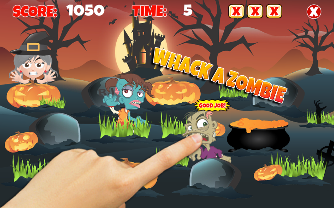 FREE Whack A Zombie Cemetery Haunt Game Visit the Haunted Cemetery with Super Fun Whack A Zombie Halloween Game. Kids as well as adults of any age (4 to 80) will love to play this unique Zombie Game loaded with 5 levels of game play. To play you simply tap your finger on the screen to Whack the Zombies when they pop out from hiding and make sure to avoid the Tricksters. Each level has a timer as you Whack as many Zombies as you can to build the highest score possible. You only have three strikes to make it to the end of the game and each time you Whack A Trickster it counts as a strike against you. 3 strikes and your out (Game Over)! Imagine the fun that you and the little ones will have whacking Zombies. *5 Levels *Earn Points *Improve Hand Eye Coordination *Free Updates This Game will provide hours and hours of Fun and Addicting Entertainment as you improve concentration and hand eye coordination. This app is prefect to challenge yourself, friends or family for bragging rights and also make a great party game. Are you up to the challenge? Download It Now!! Designed for the: Kindle Fire Kindle Fire HD Kindle Fire HDX Nook Tablet Nook HD Nook Color Nexus 7 Most Tablets and Phones