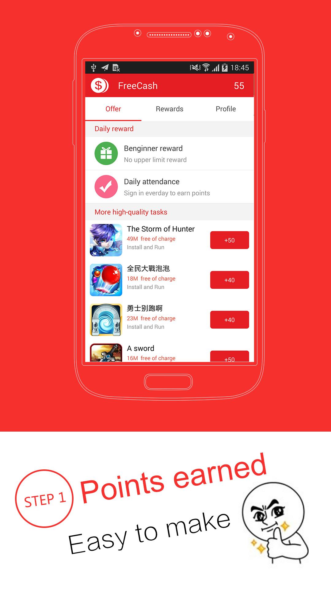 1.The world's first fully support android phone and android tablet device free App to earn cash.