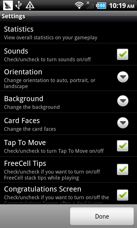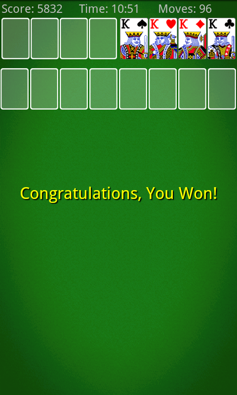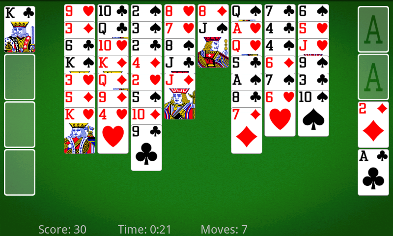 FreeCell is one of the Windows system comes with the classic game, now you can play games anywhere, anytime on your Android mobile phone. Game features: Classic structure, easy to operate, the picture quality! Game objectives: Create a stack of cards in each of four recovery units, each stack 13, and the same color. Each stack of cards must be sorted in ascending (A) to large (K) order. Playing area Description: FreeCell using only a deck of cards to play, a total of 52, up front licensing, arranged in eight columns. By the shift from eight cards to create four fold card: The upper left corner of the four "Available Units", which can temporarily put the cards in time-shifted card. The upper right corner of the four "recovery unit", in which the winner needed to build stacks. Gameplay: Drag a card from the bottom of each column, and then move the following ways: From the column to the available units. Each unit can be used only once put a card. From column to column (or from the available unit to the column). In the column must put cards in descending sequence, but alternating red and black colors. From the column to the recovery unit. Each stack of cards must be composed of the same color, and start from A. Now you can try to pass through it!