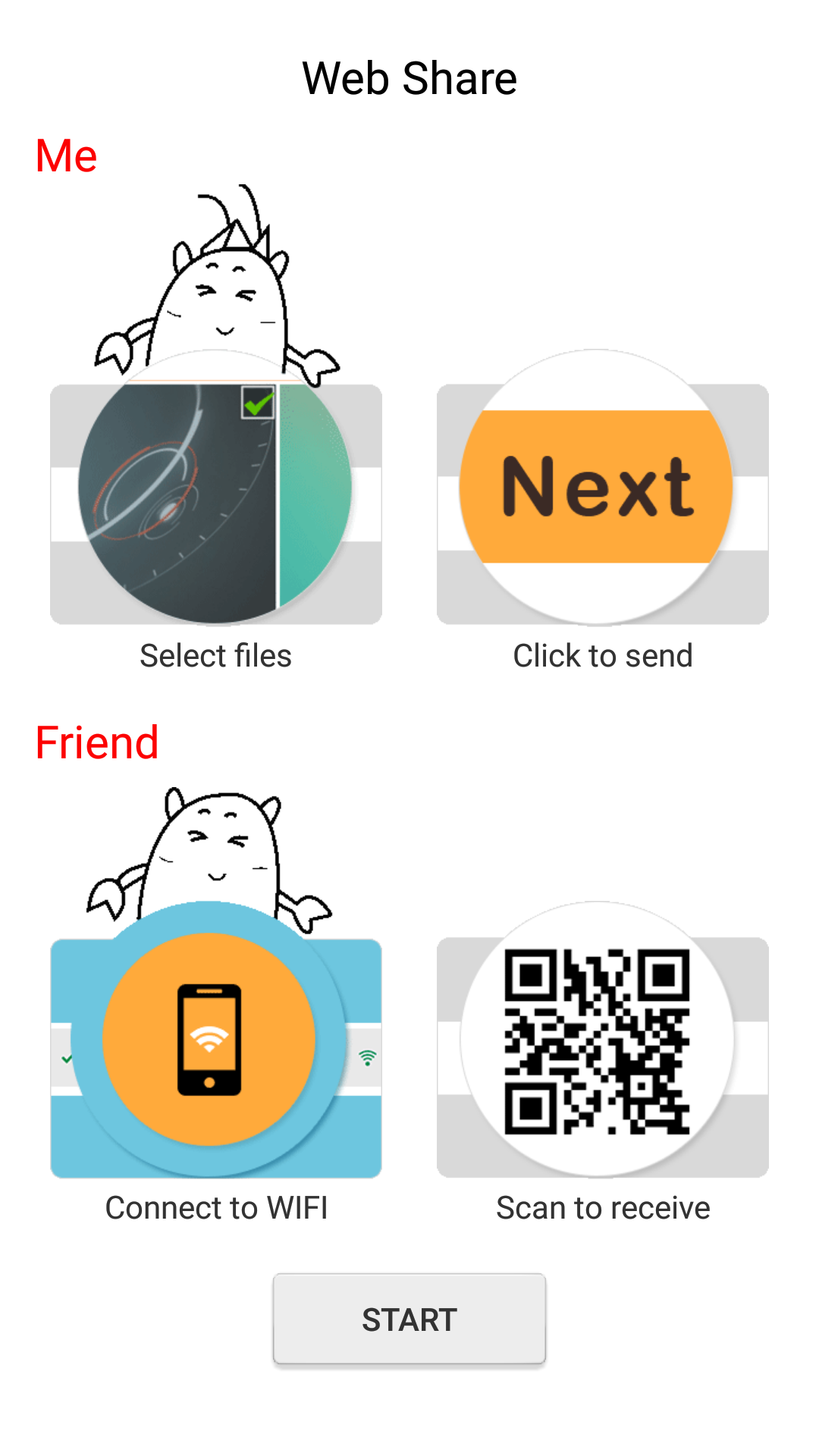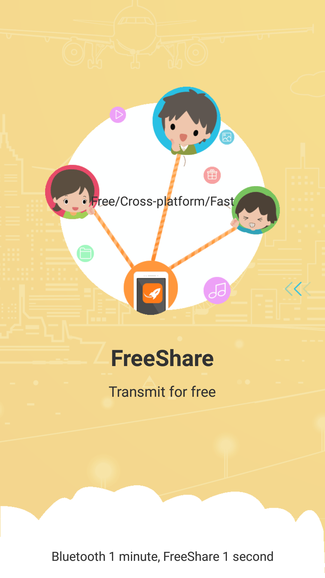 FreeShare,it's a cross-platform ,zero flow and fastest File-sharing tool. 1.Sharing all kinds of files whenever and wherever. 2.60 times Bluetooth speed! 3.No USB!No data usage!No install!NO internet needed! 4.Supports Android,ios,Windows phone. 5.Connect to PC. 6.Freely sharing by scan two-dimensional code. 7.Messages,music,videos,apps and other data from your old phone to the new one in just one click.