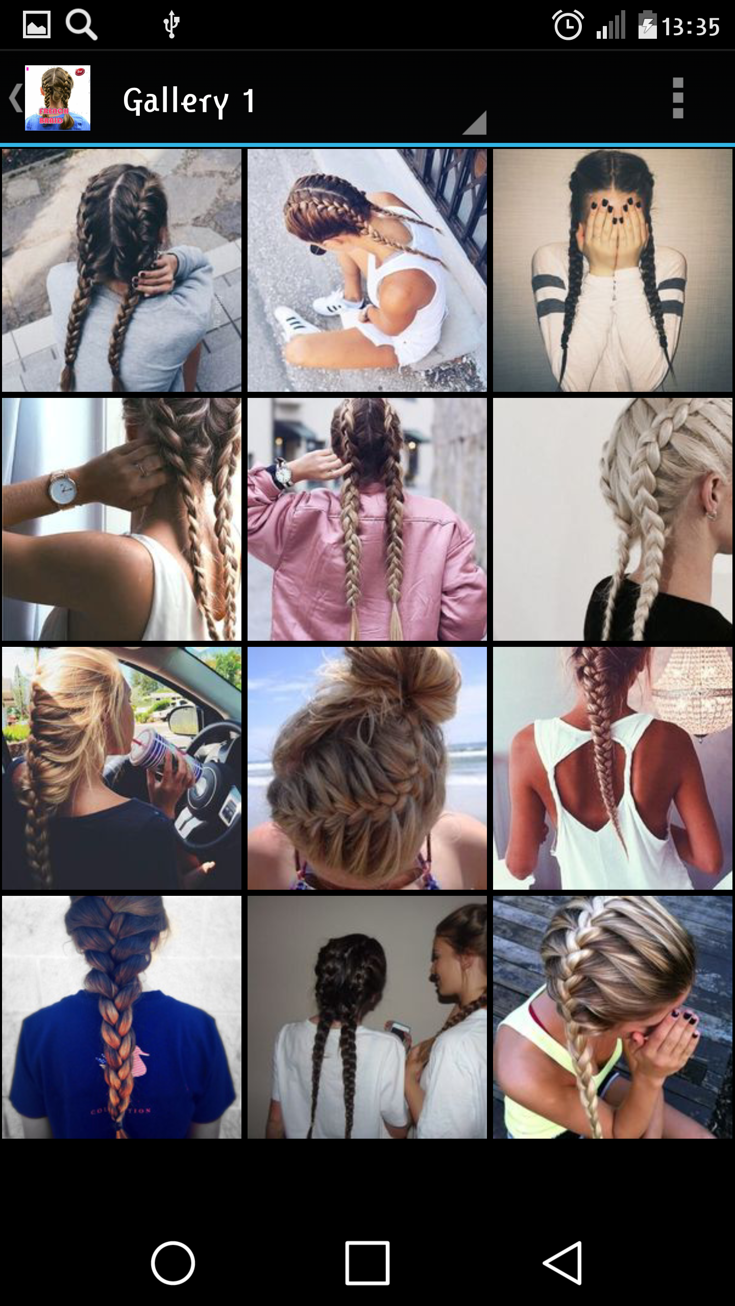 As every year, this year again, the concept also helps the user to be quite braiding hair trends. the preference of French braid hairstyle in braids hair lingering fashion, elegance and modernity returns, it puts forward. Of course, among them the herringbone braid, French braid and weave mermaid those are also preferred. Hair does not seem to be now in formal fashion. French braid model, a model of which is in particular may prefer women with long hair. The app also seems pretty easy. After pulling the mesh nodes to slightly amplify the important point knitting done. This gives a bohemian image. If you are tired from an ordinary horse tail, you can change the French Knitting. Before you start doing this hair, you put a little crepe front will begin processing. Thus, you get a fuller picture on the front. I do not want to collect my hair, but this model is quite ideal for those who get my hair to the organization. one day you make curling your hair, if you want to differences in levels, you can weave such a side. You may notice that quite a stylish appearance. You can easily use it even in your workplace. Of course, knitting patterns, shows itself more in the long-haired lady. For those who are bored of standard horse tails, at a pinch the sides with the tail, with a new style of French braid hairstyle can be created. This knitted directly as you can in this way, creating folds, you can shape with the help of rubber buckles. If you want to braid it as you did, you can amplify your knuckles to pull him by the little braids. Thus to win a bohemian look and you'll reveal a new style. It is always possible to leave a good impact for changes lady. To give you a brief hint about the construction of this model in a practical way; Scan your hair well before the start of the construction of the French braid. Take a lock of hair from the top of your hair fully and evenly divided into three parts. You will continue to braid your hair by your chosen. Check the middle of the rear part before you sprinkle into three parts and then pass to the middle of the front part. Add to your knitting knitting by taking pinch and continue in this way. Continue taking out the front and rear parts, respectively. After eg in this way to the back of your head that you just continue with normal braided portion and connect eg finished tire. Gather all the hair in a ponytail. Make a messy bun of hair you connect. work for all of these and more in our "french braid" must visit the application. Our "french braid" in practice, to find the most appropriate model for yourself and you will very likely. Now our "french braid" Download the app and enjoy. • You can save all the images in the application tablet or your phone's memory card. • Using in-app features all the pictures your friends and your friends can share, you can get their ideas. • All pictures on your tablet or phone, you can set it as wallpaper. • In addition, everything in the application and the content is presented to you completely free of charge.
