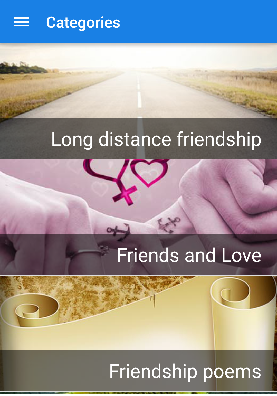 - You will find different categories: quotes for a boy or girl friend, broken friendship, friendship and love, friendship poems, friend encouragement quotes, long-distance friendship, funny friendship quotes, etc. This way you can select the most appropriate messages for each situation.