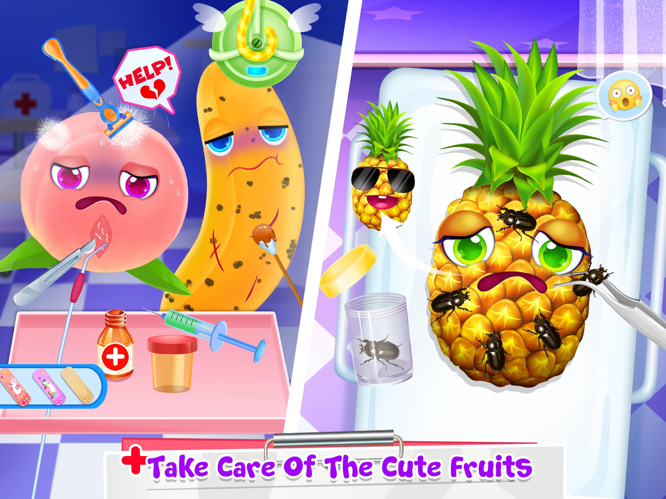 Come on. The Fruits need your help! Prepare your tools and heal the fruits. Be careful, as an official fruit operator take your job seriously and let the fruits be good. More vegetables need your help too. Features: · 7 cute fruits to choose from (corn, tomato, banana, pineapple, strawberry,peach and watermelon) · 15 medical instruments you can choose to treat the fruits · Vivid Animations to enjoy the games · A huge variety of decoration items to choose, including funny band-aid, colorful ice packs, attractive infusion bottles and so on. · Fruits will have various expressions and sounds when you are treating them · Snapshots of your fruits can be saved in your photo album · Help with more vegetables · Continued improvements of this game, please feel free to send us your feedbacks and suggestions