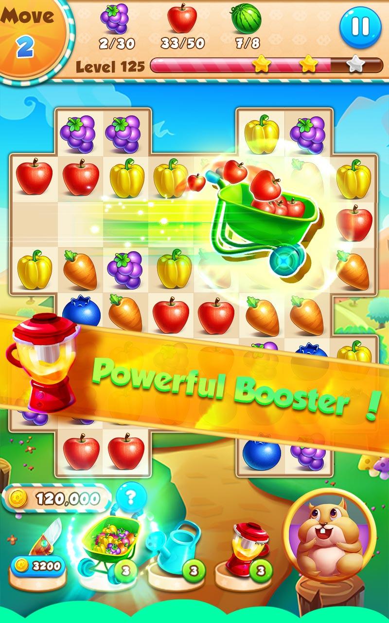 Fruit Town is fun and challenging juicy crush game! Colorful and delicious fruits are waiting for you! It must be a harvest season Oh! Now join in the interesting farm worlds, enjoy fruit carnival! How to play: 1. Match three or more identical fruits to make them burst. 2. Complete goals need to remove obstacles in the moving steps. 3. Fewer steps to get more scores and stars Game Features: - Easy to use, hard to become a master. - Two charming game modes. - More than 80 challenging levels. - Many challenging puzzles make the game more addictive. Fruit Town is completely Free to download. Challenge now!