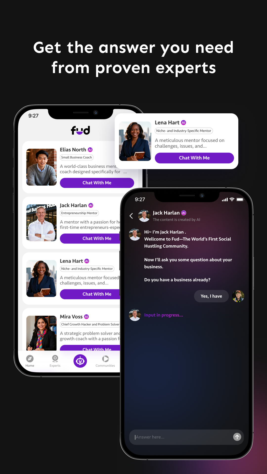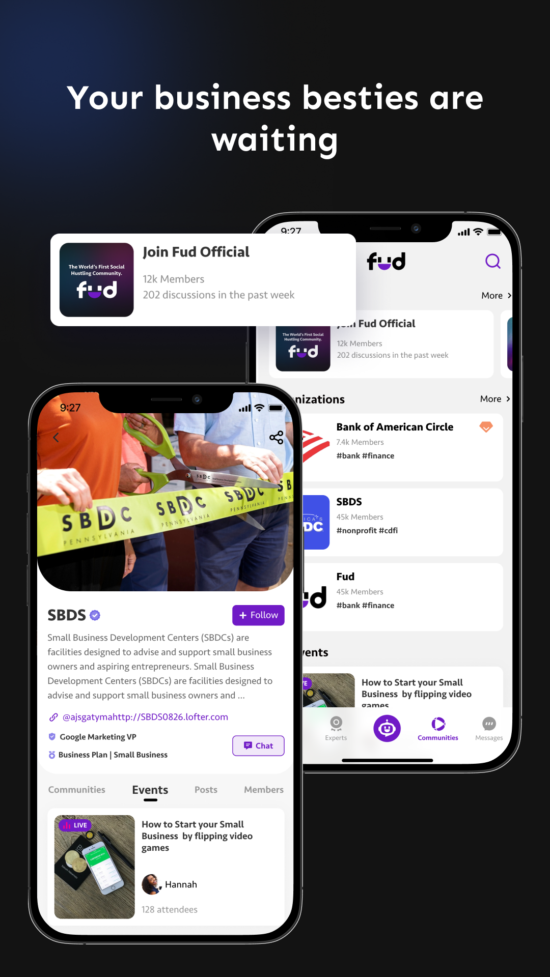 Founded by hustlers, for hustlers. Fud is a community that helps people find, learn, and execute on their business. We know how hard entrepreneurship is, so we designed a community to provide the know-how and support to keep you going. Whether you’re starting your own online service or building a brick-and-mortar business, you learn straight from experts through live video, on-demand video, and social audio streams. Fud partners with proven experts and trusted organizations to give you the know-how and the community, so that you can take action to learn, collaborate, and grow your business.