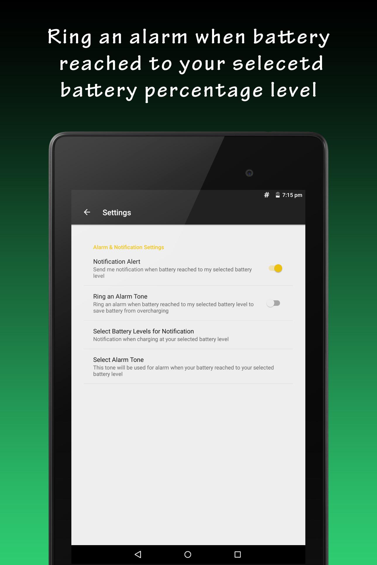 Alarm Ringing when Battery Reached to 100%