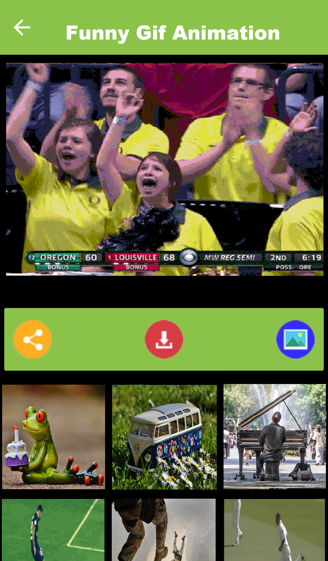- Once you select the image, you will have the options of sharing and downloading the GIF images and animations.
