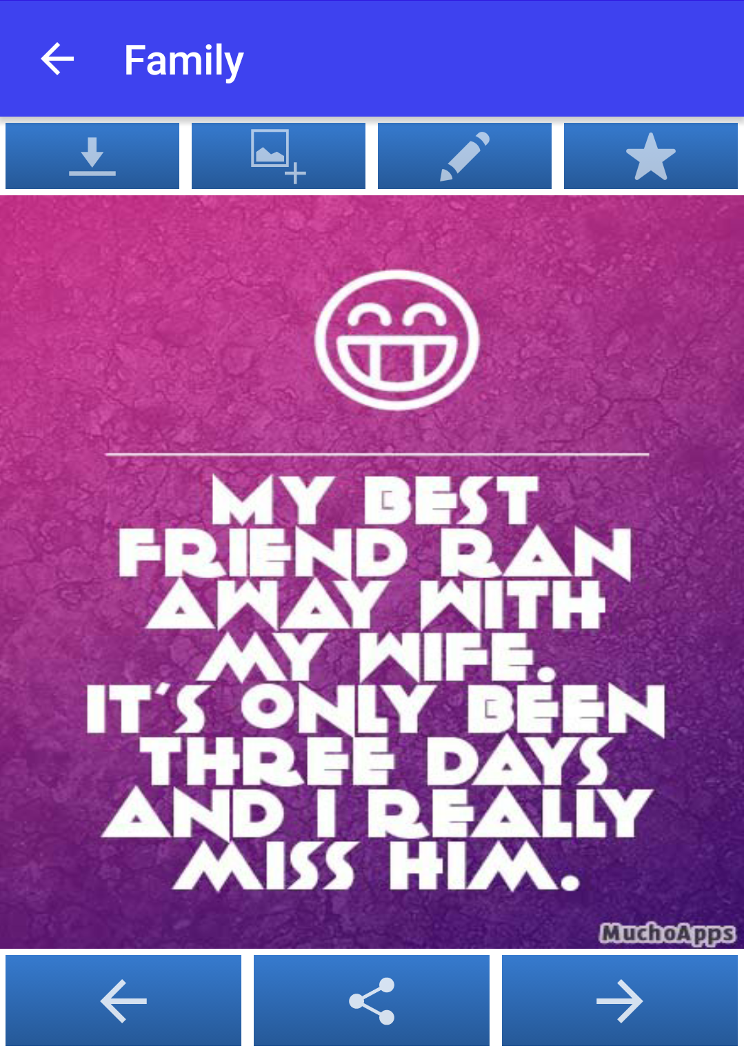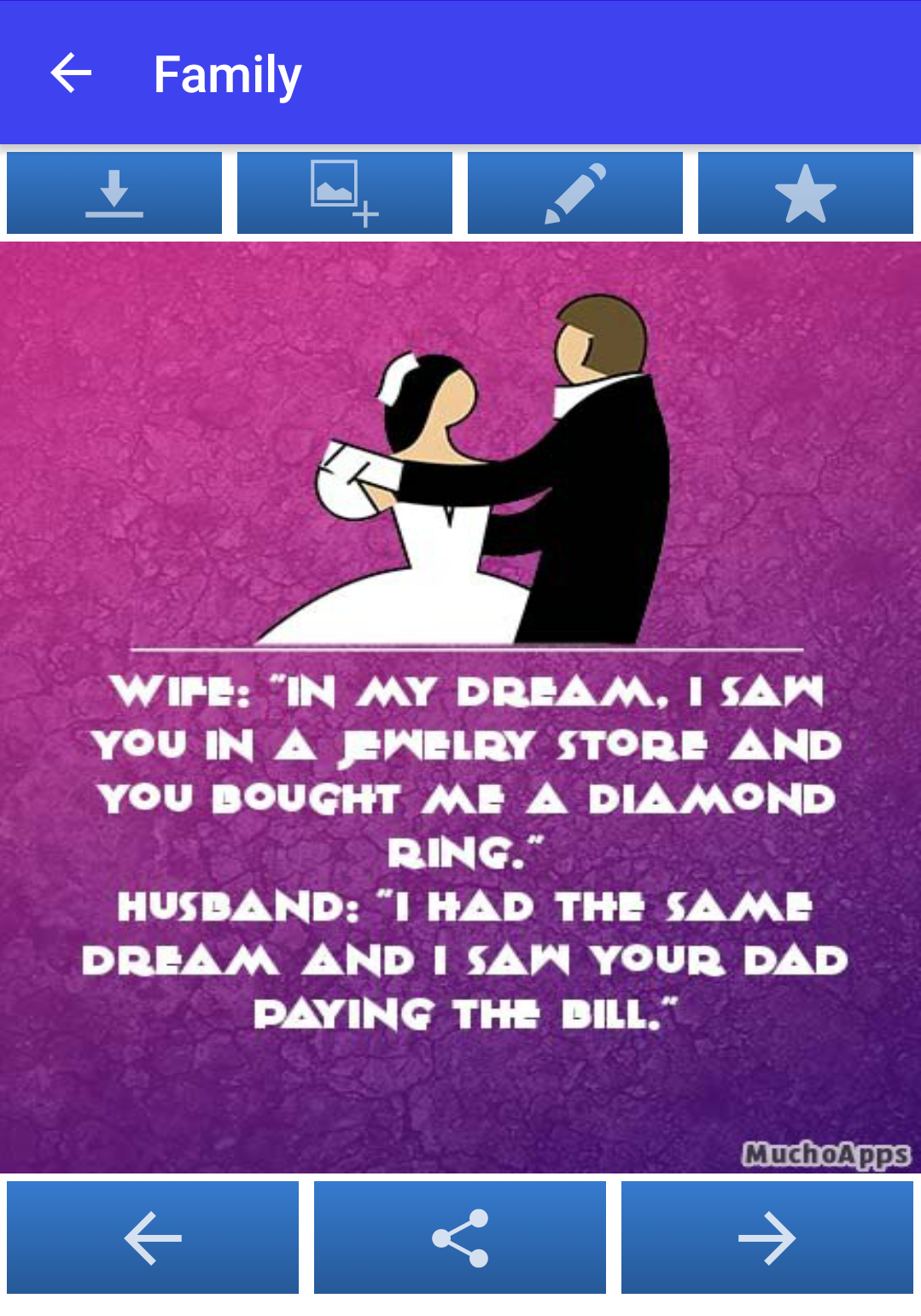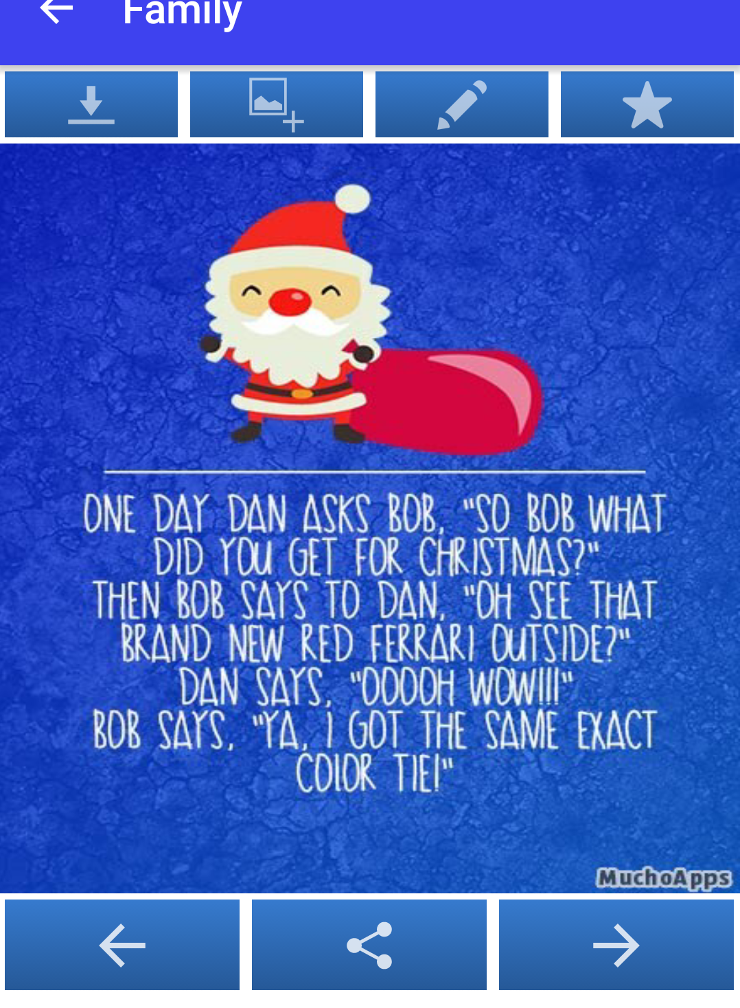 - If you find a joke you really like, you can use the center button to share it through your favorite instant messaging and social networking apps. Also, you also have the possibility of sending these jokes through SMS or via email, for example. In short, you can share the jokes through any program or app of your choice.