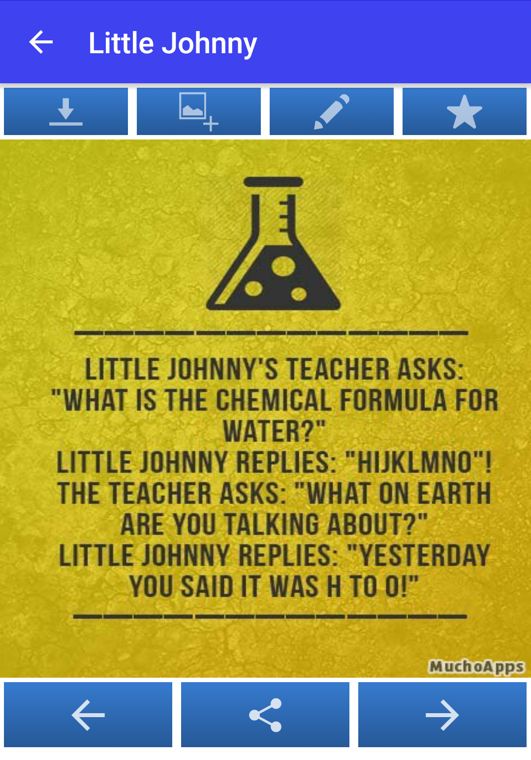 Funny Jokes (Package Name: muchoapps.chistescortos) is developed by Mucho-Apps and the latest version of Funny Jokes 171130 was updated on December 13, 2017. Funny Jokes is in the category of Entertainment. You can check all apps from the developer of Funny Jokes and find 11 alternative apps to Funny Jokes on Android. Currently this app is for free. This app can be downloaded on Android 4.0.3+ on APKFab or Google Play. All APK/XAPK files on APKFab.com are original and 100% safe with fast download.