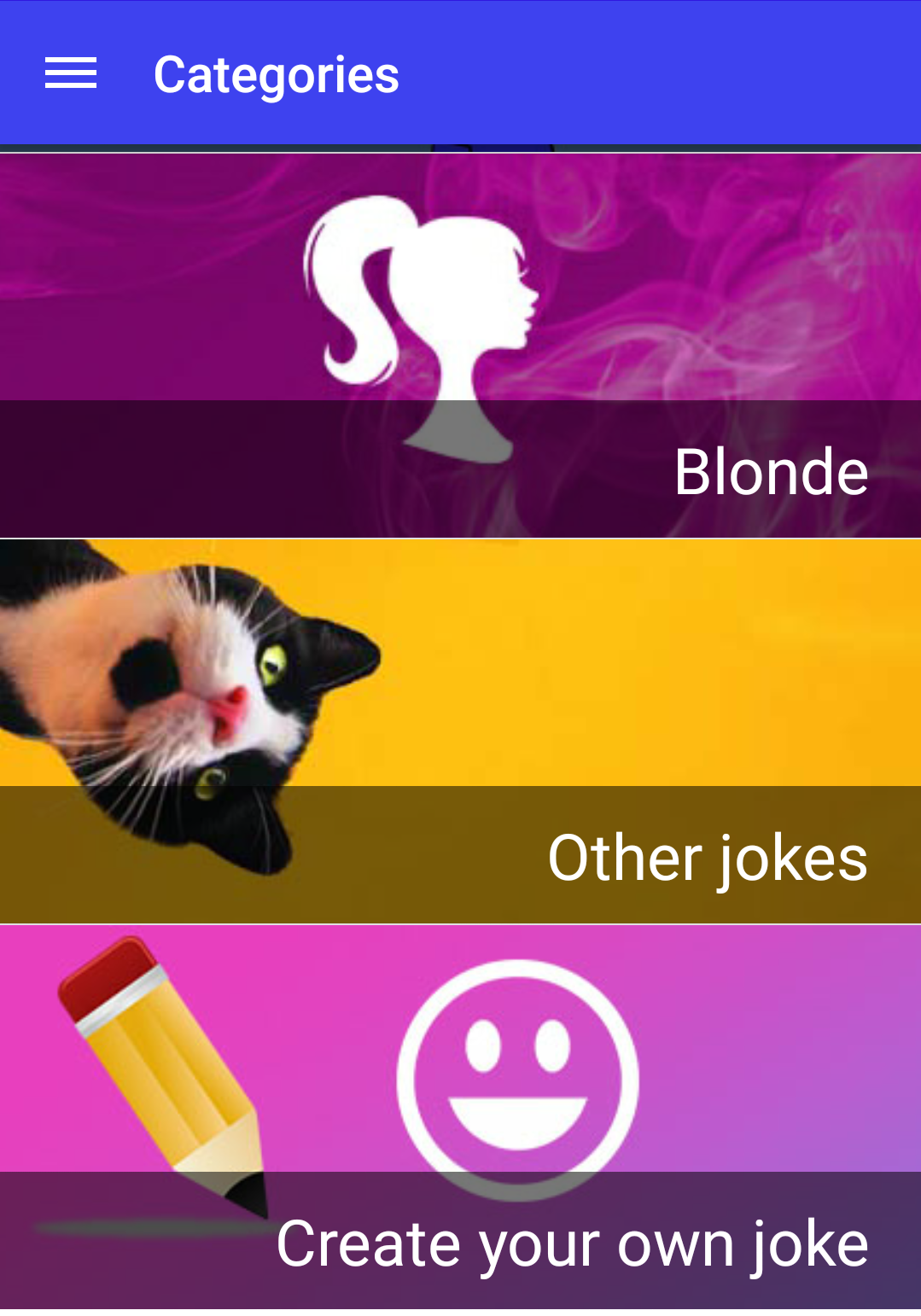 Main app features:- We’ve classified the jokes in different categories so the app is easier to use: jokes for kids, friends, family, jokes about blonde girls, husband wife jokes, knock knock jokes, animal jokes, among many more types of jokes.