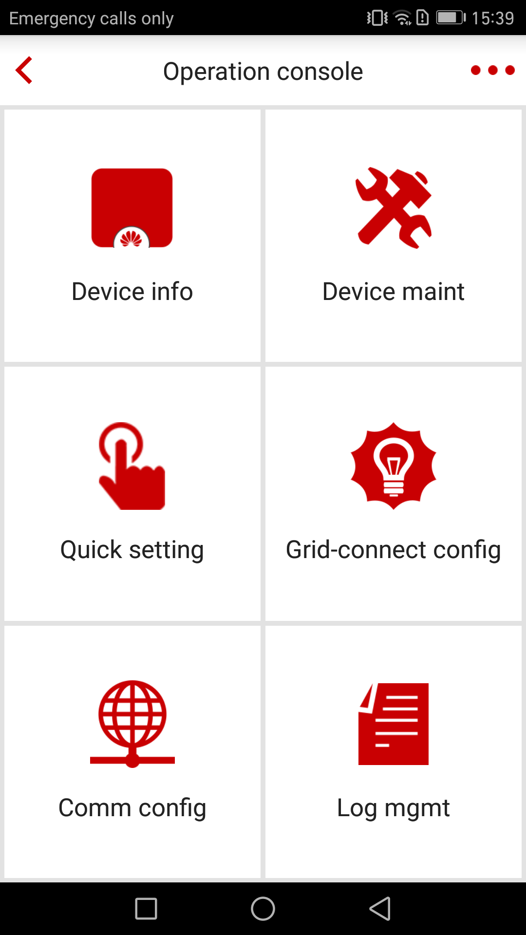 FusionHome is a smartphone application software , which can communicate with the inverter locally through the WiFi. It can realize one-click deployment, parameter configuration, and device maintenance, alarm query, query of equipment status, power generation and power data and check the/var/log management, and communication configuration functions and is a convenient local maintenance platform of the inverter. Supports IOS8.0 and later (Android 4.4 or a later version). One-click deployment: guide the user quickly Implement inverter basic configuration, including the connection routing setting, parameter configuration, grid-tied inverters self-checks, or management system configuration. Interconnection parameter settings: Set the national power grid standard code and an expert mode settings, including parameters of power line network, protection parameters, and feature parameter, a power adjustment and time settings. Equipment maintenance: device upgrade , add and delete devices, and inverter power-on and power-off and restore to its factory settings. Device information: electric energy yield and power data check, and alarm query and view the device status. Log management: download, delete, and export APP and inverter log Communication configuration: mainly on the inverter self WiFi password management, route configuration, and connection management system setting