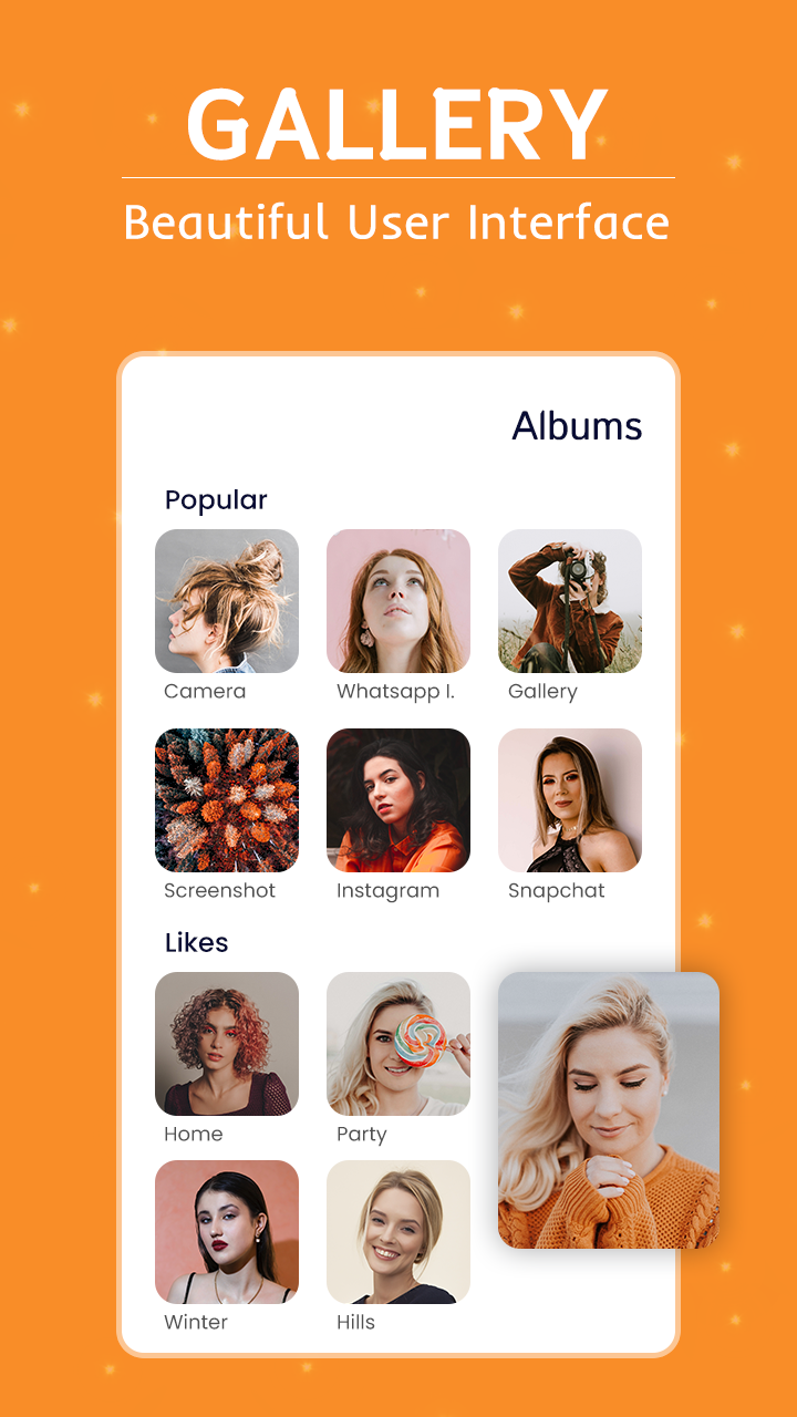- Create Albums and choose best photos of yours into secret folder.