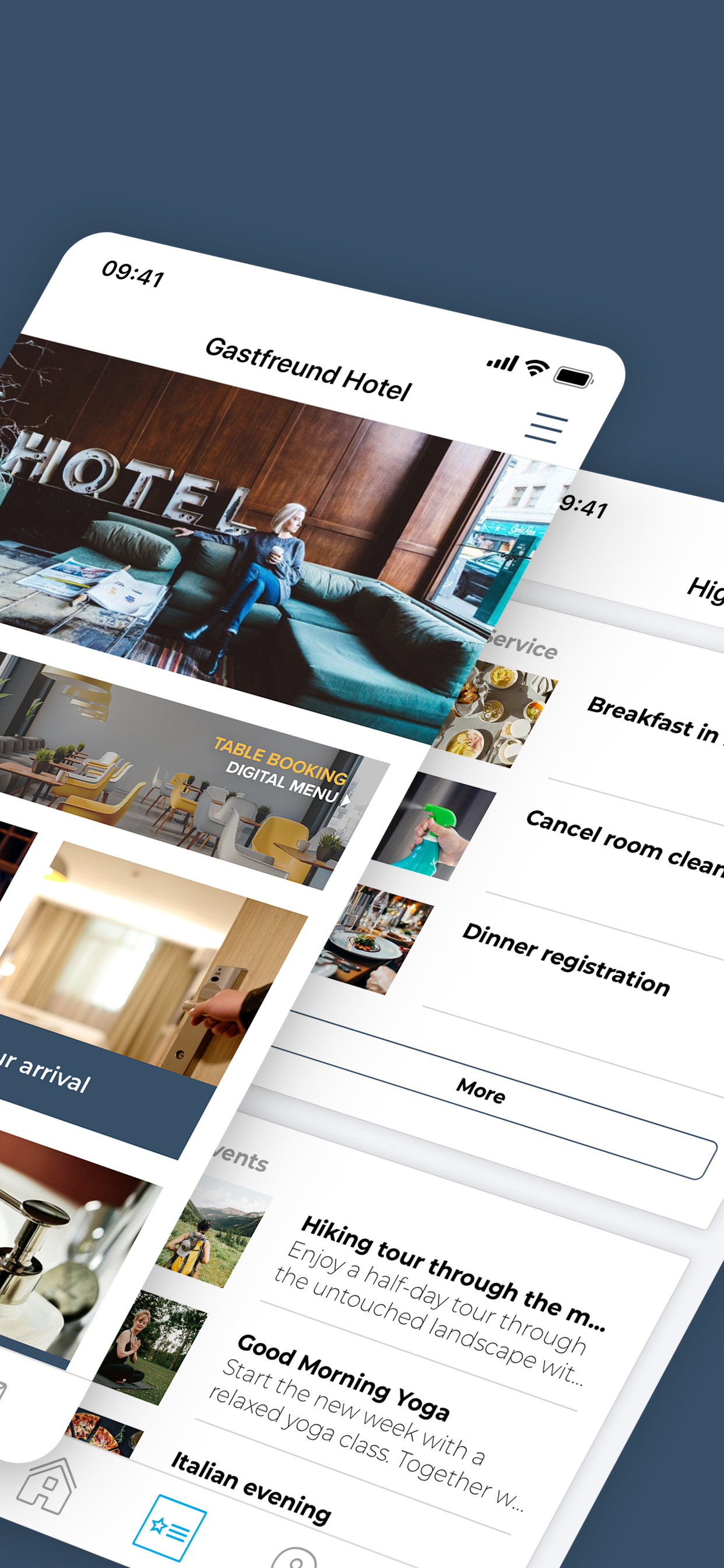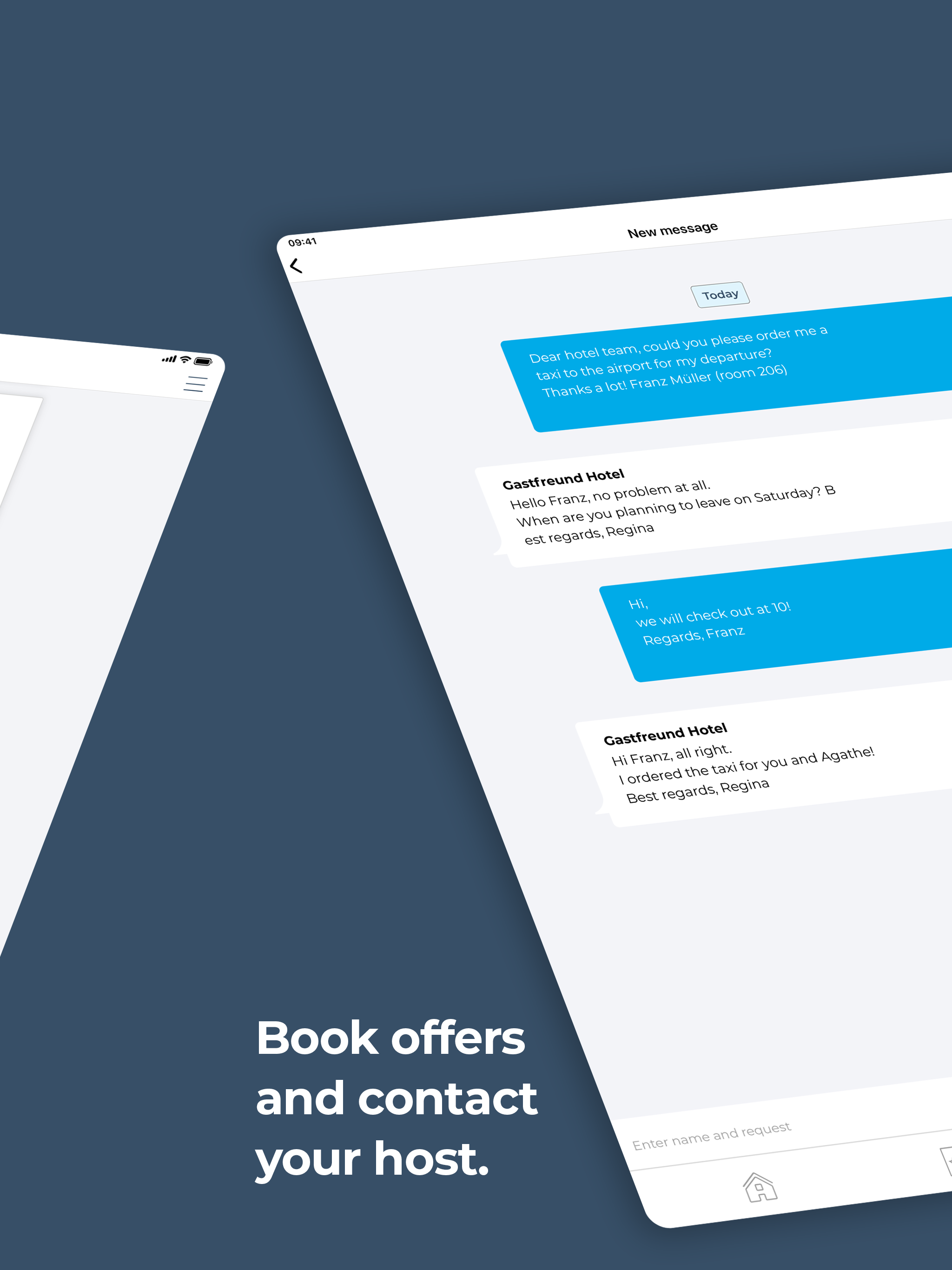 The Digital Guest Directory for your accommodation contains important arrival and departure information, an A-Z for guests, WiFi access details, menus, recommendations, and much more. Book services offered by your host – such as spa treatments, bread deliveries, room service and bike rentals - directly through your smartphone or tablet.