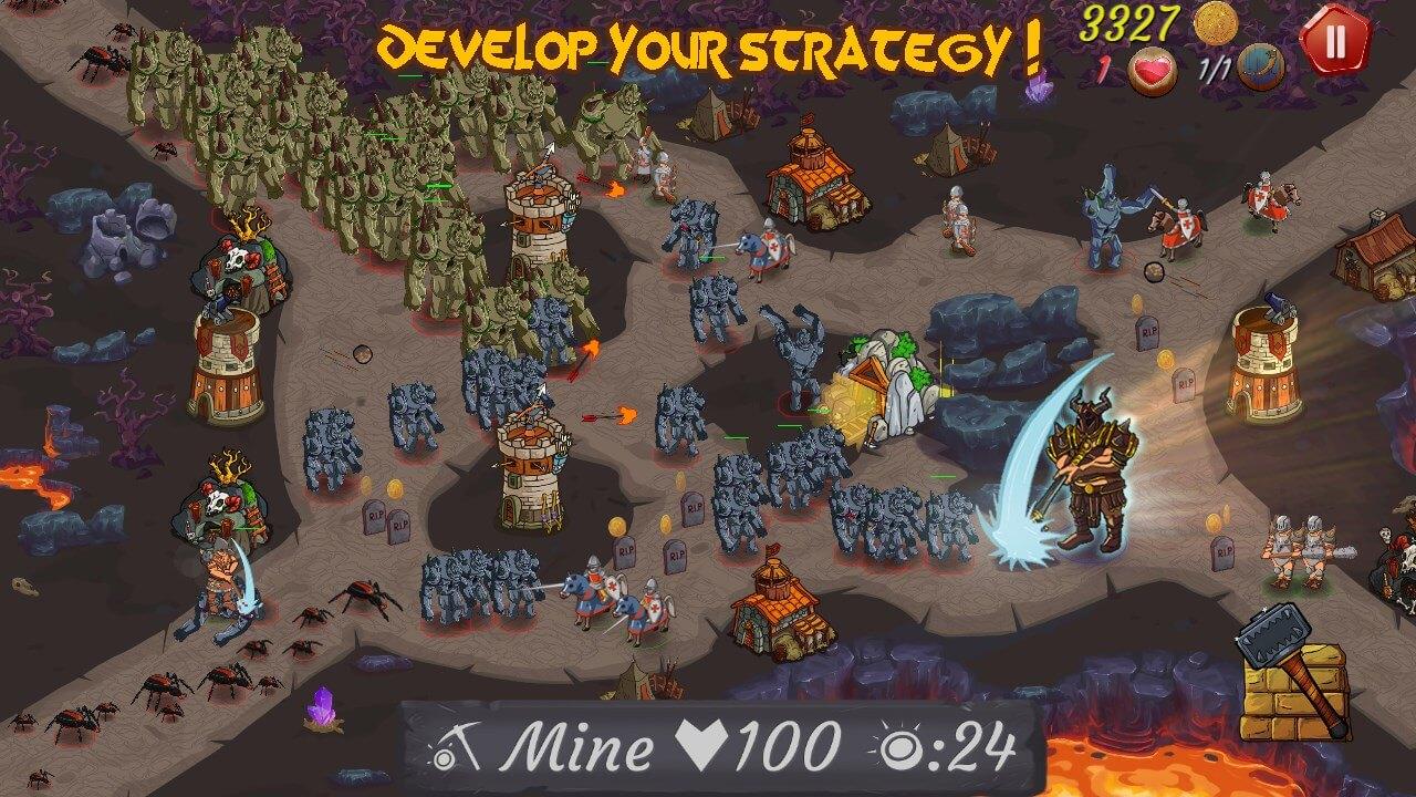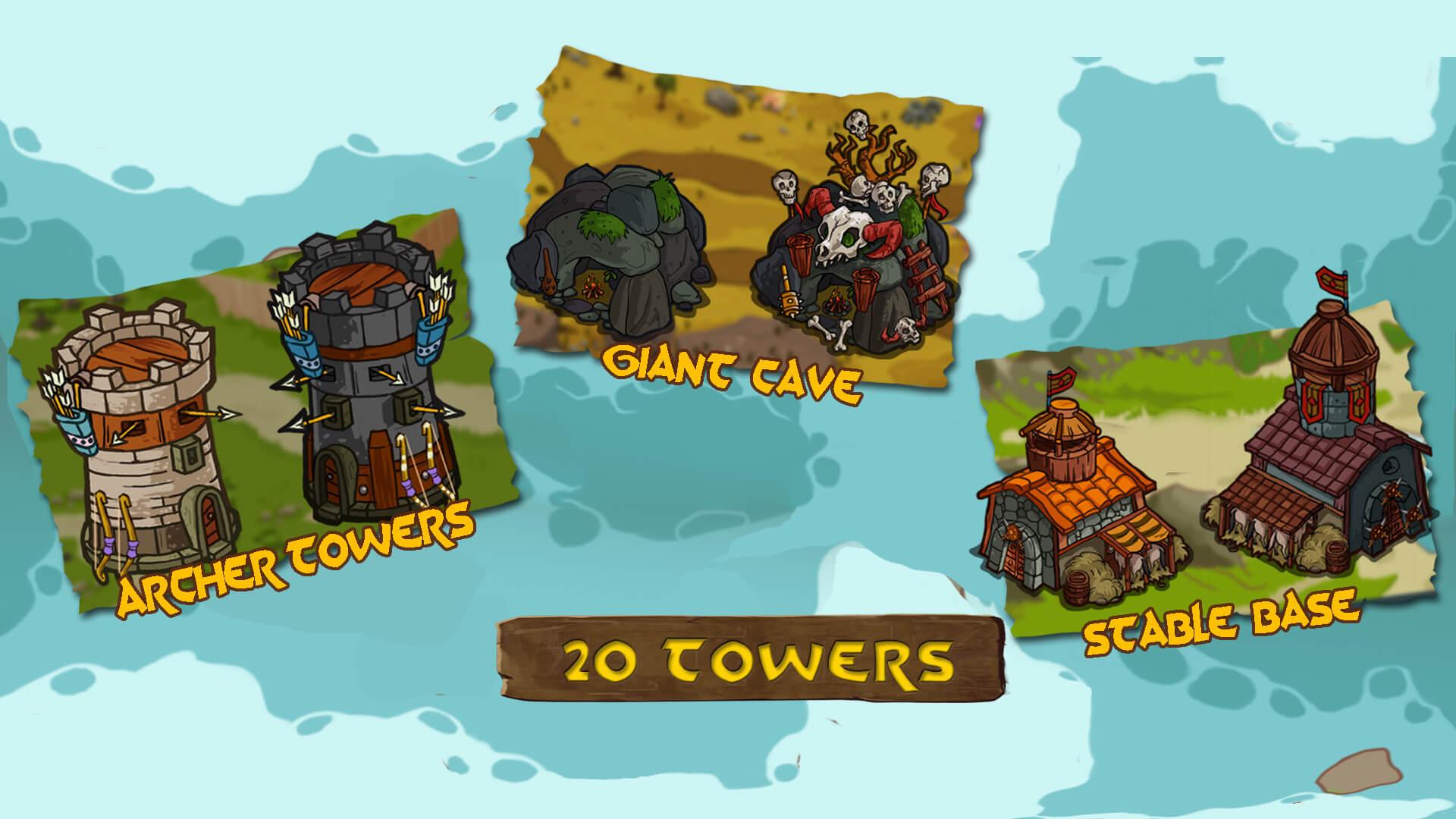 An epic medieval tower defense! Protect your empire with knights and heroes In medieval times, Elves, humans and giants forged an alliance to seek for a mysterious treasure. Choose your king and defend your village against enemies’ assaults. Get your hero ready for the upcoming battle, build the strongest towers and cast insane spells: you will develop your own strategy to progress through your quest. Will you reach the mighty place known as the Gate of Heroes? • Progress through various maps in campaign mode. • Choose the best general for the upcoming battle! • Many items to upgrade! Collect gold and get new buildings, spells and heroes to gain power! • Special levels in the challenge mode! Will you dare fighting against zombie hordes, evil skeletons and raging apes ? • An addictive game, from the novice to the shrewd strategist: they are thousands of ways to win! • The best TD ( Tower Defense ) ever • Most complete strategy Tower Defence Features: • 9 unique heroes including elves, giants and humans • 20 towers • 40+ monster • 16 levels • 8 bonus level • 3 spells And more…