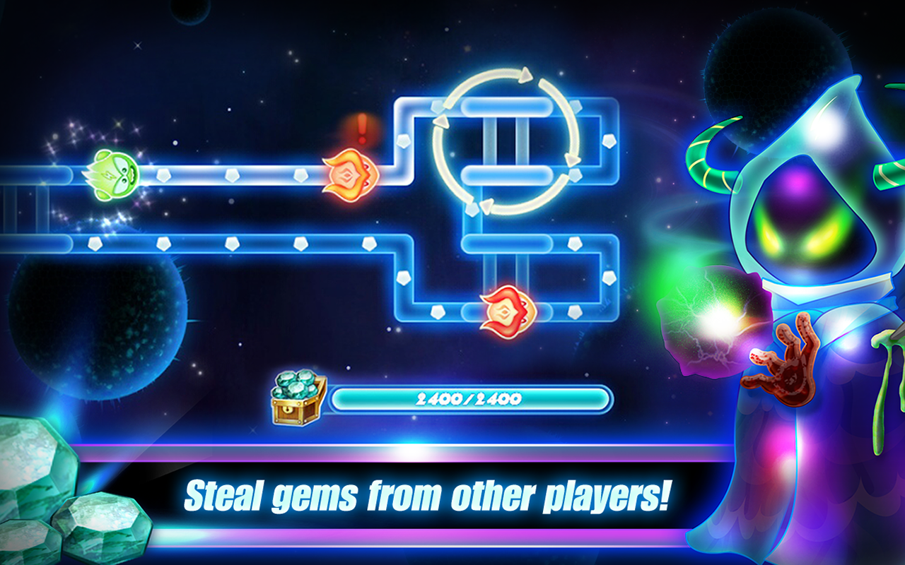 ▶ Shake off guards(monsters) of other players and steal gems on a unique game