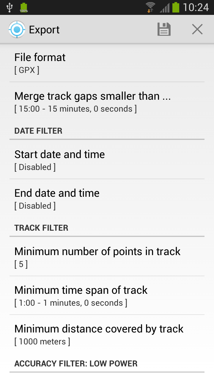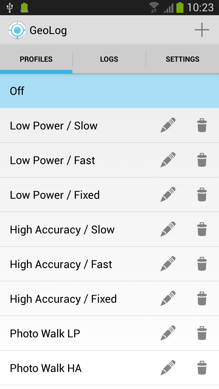 GeoLog is a new kind of location tracker which changes tracking characteristics based on where you are and what you are doing. On foot, you travel slower than by car, and you may not want to gather location data as often. If you're standing still, why track location at all - it's just a waste of power. If you're on a photo walk, you might only want to track location while walking, and not when doing anything else - like driving to the where the walk starts. When on a long trip, you may wish to use a less accurate low power tracking solution, while on a short trip you may prefer tracking as precisely as possible. This is all profile-based and highly configurable. Based on Google's new fused location provider, it can determine when you are standing still, walking, cycling, or in a moving vehicle, and adjust tracking parameters accordingly. It will automatically switch between all methods of gathering location data (sensors, cell and Wi-Fi networks, GPS, etc) to give you the best location fix possible, within the parameters you set up. The app currently supports exporting to GPX and KML formats, and has an extensive selection of export filters. GPX export files are tested against Lightroom, where KML export files are tested against Google Earth. Apha / Experiment This is an alpha release. It is already usable, but it's not yet feature complete. It has also not undergone rigorous testing on various Android versions yet, so expect issues. Reference/development device was an SGS3 running 4.2. Furthermore, this whole thing is an experiment. I'm not sure how well this will work in reality. I have built it to track my whereabouts on a long trip far away, and seems to have worked rather well at that ! You will also probably need to adjust the profile presets to your personal preferences. Ultimately, I would like this to be good enough to just leave on 100% of the time! Scary Permissions This app requires location and activity permissions to track your location. It also needs to run at boot to start the tracking service (if enabled). Wakelocks are required to process the location data at the configured interval. External storage permissions are required to export your data. I do not track anything you do or what you click. All personal data goes to the app internal database only, you are the only one with access to that information. Your information is not sent to me. Discussion The XDA-Developers discussion thread can be found here: http://forum.xda-developers.com/showthread.php?t=2386317 Source GeoLog is open source, licensed as Apache v2. You can find the latest sources here: https://github.com/Chainfire/GeoLog . Note that a lot of what goes on under the hood is inside Google Play Services, which is closed source.