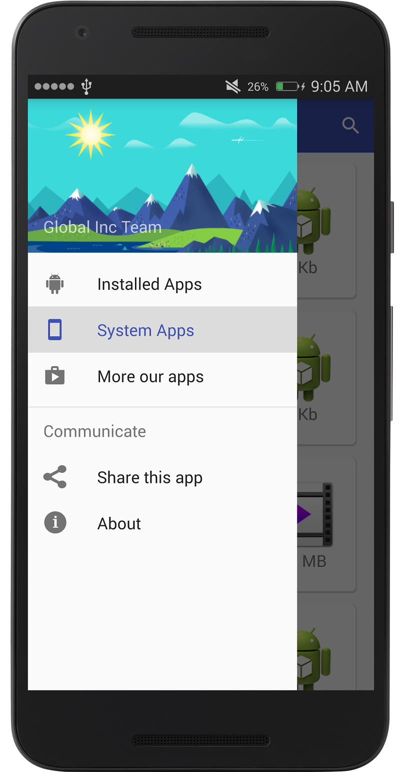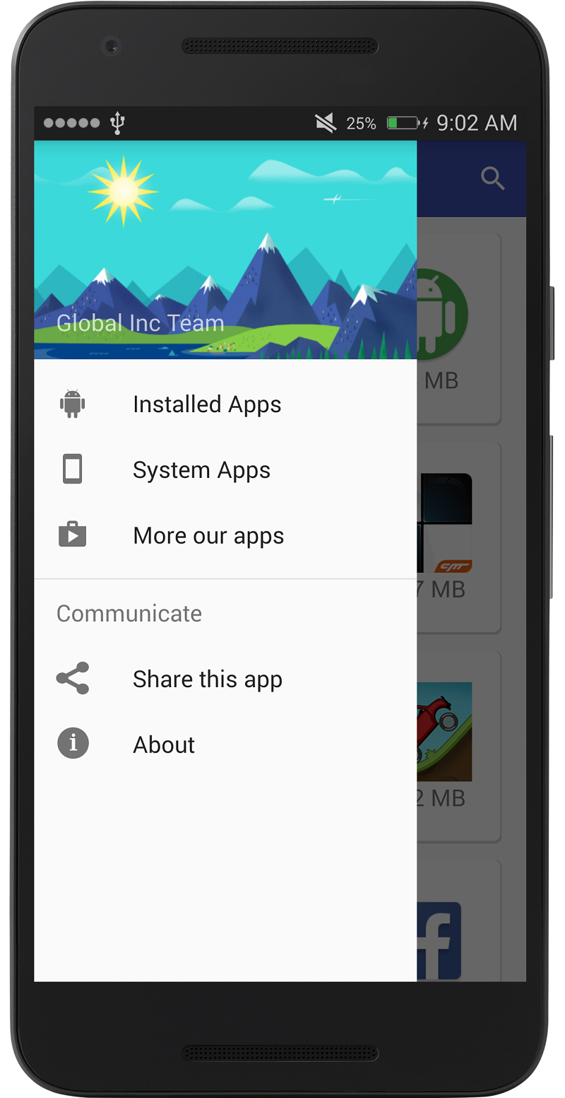 It show your applications with a list, you can get a installation package directly from your memory and share Installed Apps file directly as attachment via Bluetooth, Email, Drop-box, Google Drive etc.