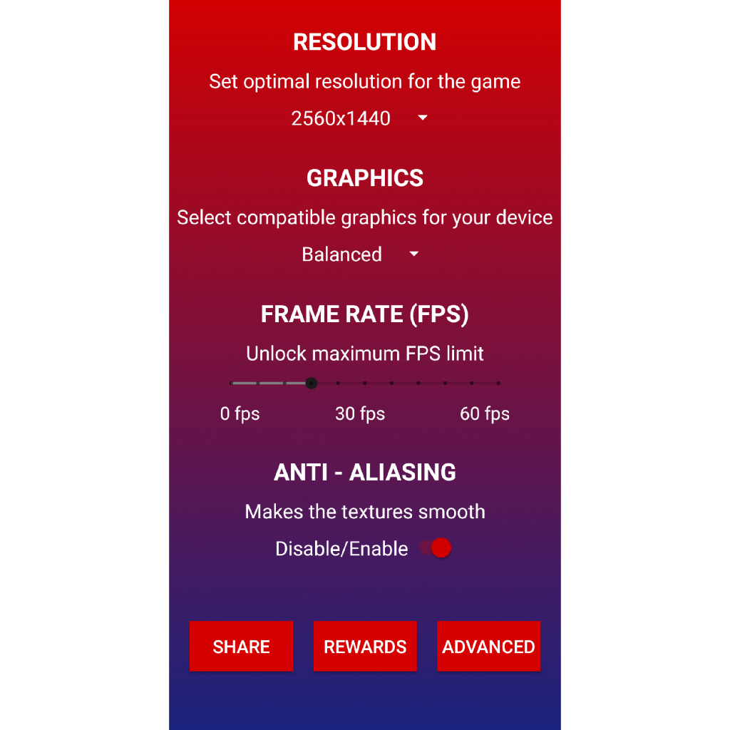 Here we referring to Video resolution of the game that means the number of pixels displayed in width x height. So, this GFX software supports from 950×540 to 2560×1440 pixels resolution, which covers even the HDR quality video games.