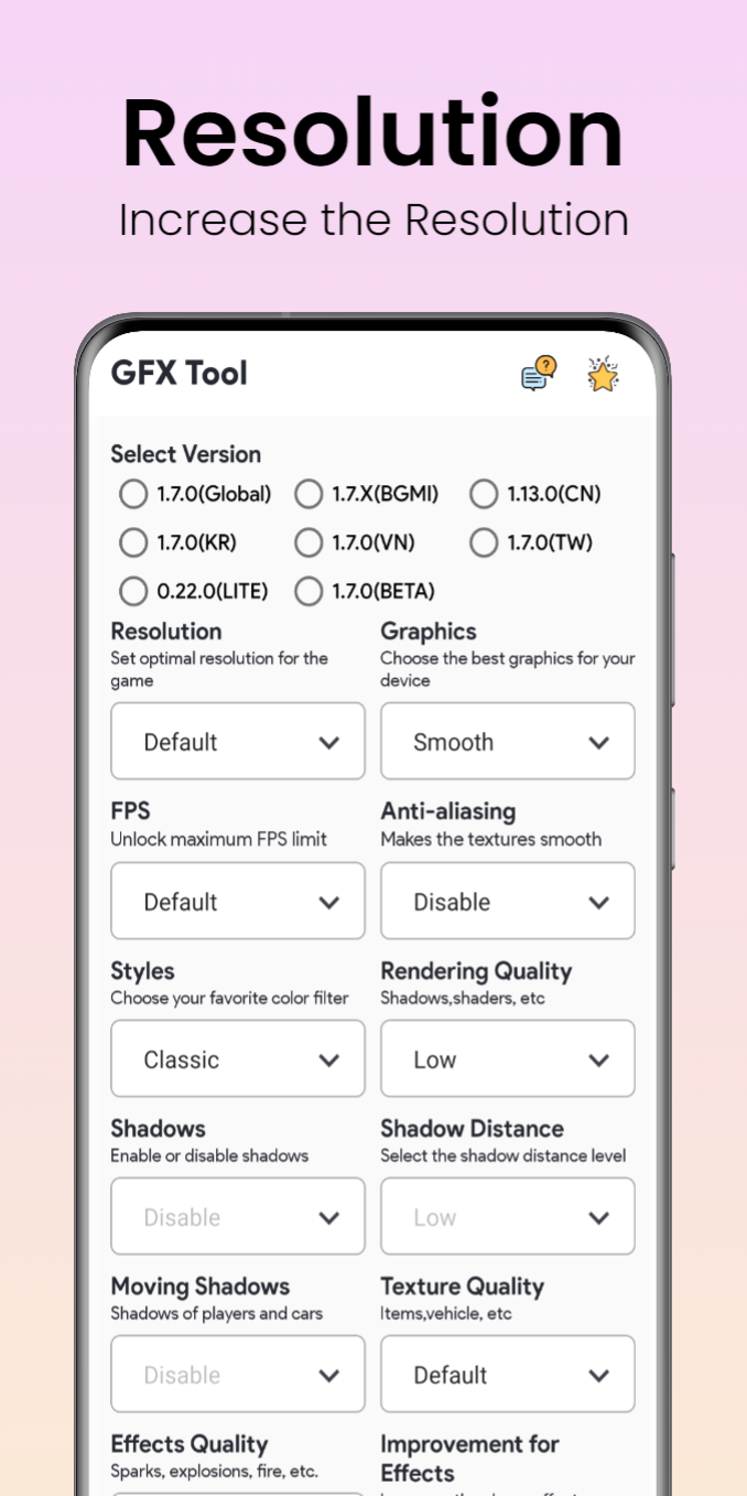 GFX Tool For BGMI (Package Name: com.gamebooster.gfxtools.propaid) is developed by Alps IT Solution and the latest version of GFX Tool For BGMI 1.0.30 was updated on February 2, 2022. GFX Tool For BGMI is in the category of Tools. You can check all apps from the developer of GFX Tool For BGMI and find 18 alternative apps to GFX Tool For BGMI on Android. The current price of this app is $0.99. This app can be downloaded on 4.2 on APKFab or Google Play. All APK/XAPK files on APKFab.com are original and 100% safe with fast download.