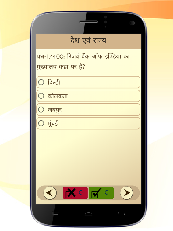 GK and Current Affairs application is describe many general Knowledge topics questions for competitive exam preparation in Hindi language. Read and Practice various topics and current affair MCQ in hindi format and increase knowledge using this application. Its free to use and help all people searching for government jobs or for are preparing for any entrance exams. This app is very useful for the students and other people who are preparing for government entrance exams like Public Service Commission (TNPSC), UPSC,SBI Associate Banks PO, MPPSC, AIEEE, AIPMT, CAT, IIT-JEE, PCS, GMAT, SSB, GATE, GPSC, JKPSC, APSC, Mizoram PSC, WBPSC, UKSSSC, CRPF, KPSC, JPSC, HPSC, OPSC, IBPS PO (Institute Of Banking Personnel Selection Probationary Office), IBPS Clerk, IBPS CWE RRB, SBI Clerk, SBI PO, IBPS SO, CTET, RBI Assistant, RBI Grade B Officer, SBI Associate Banks Clerk. Basically this application may be divided in two main category - 1] General Knowledge -GK MCQ & Practice. 2] Current Affair - Current Affair MCQ & Practice. Feature... - Offline Application so does not require internet connection, - Easy Graphical User Interface , - All Content provided in hindi so easy to read and understand. - Increase your general knowledge and will make you aware about various GK topics and Current affair(Monthly),