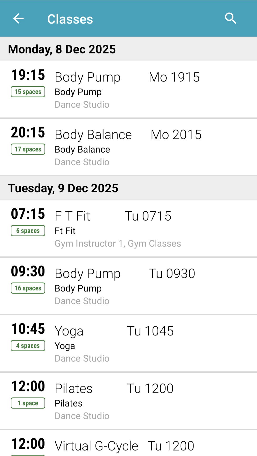 Get real-time access to your centre’s timetable for classes, including time, location and instructor. Check availability, make and pay for a booking (where its not already included in your membership), amend a booking and cancel a booking – all on the move!