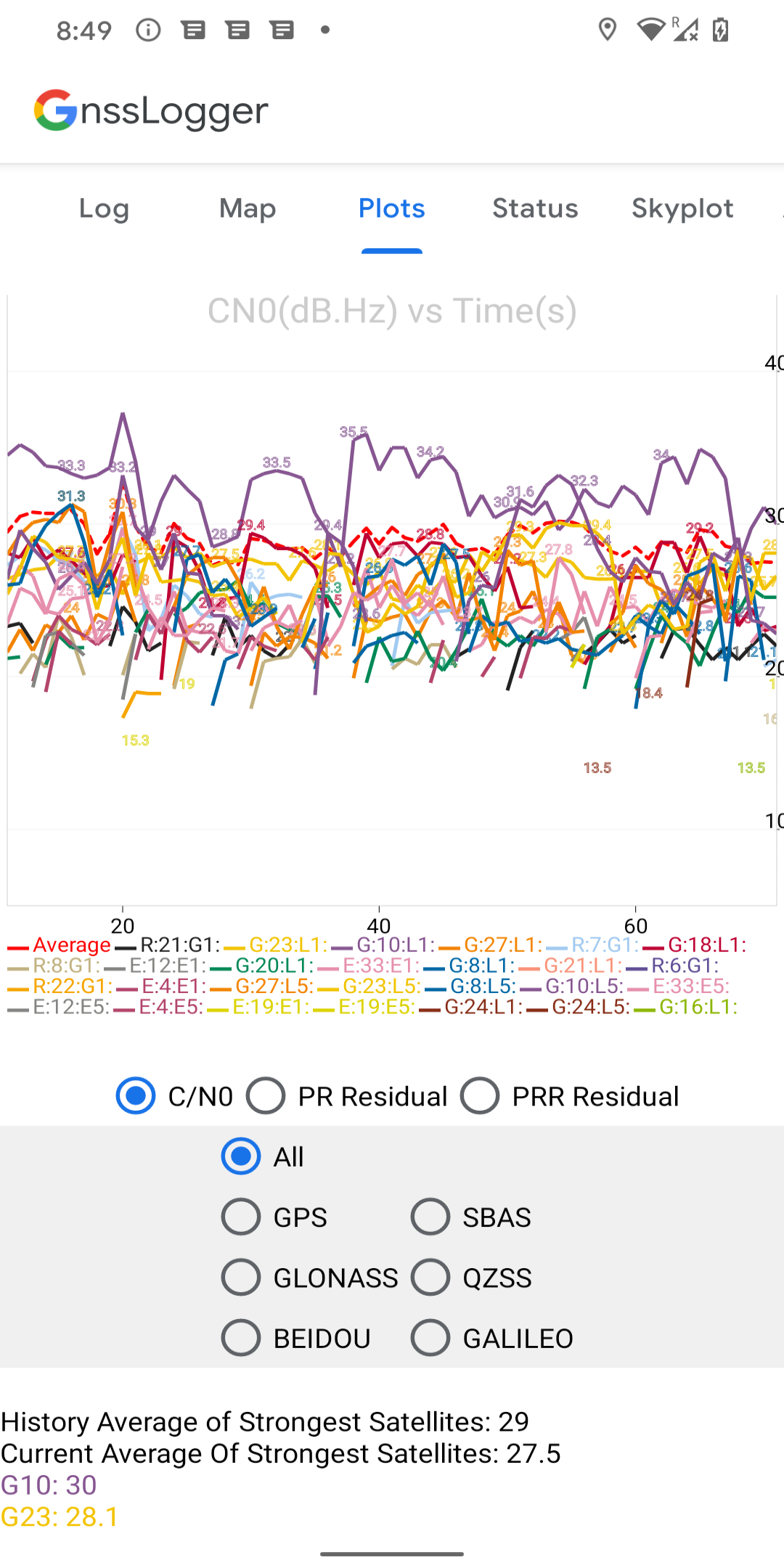 • Share data for AI analysis - Tap on the new "Share" button to send yourself data files optimized for analysis by Gemini! • Satellite PVT - Satellite PVT is now logged along with raw measurements. • NavIC support - On Plots and Spoof/Jam tabs.