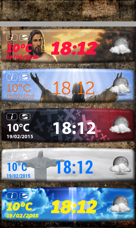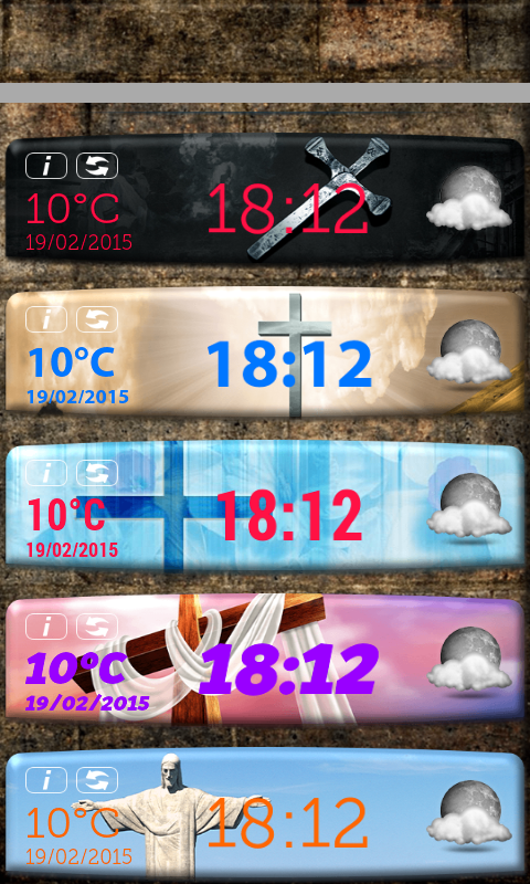 ✟God Clock Weather Widget ✟ is new religious widget for your mobile. If you are a religious person! If you truly believe in God put beautiful God widget on your phone screen. Decorate your screen with pretty “God Clock Weather Widget”, and express your devotion to god. A clock widget that displays the time, the date and even the weather offers different color themes to choose from. 10 digital clocks that show the weather forecast, 5 unlocked and 5 locked. Every day new clock is available. Put wonderful clock and weather widget on your home screen. Top widgets of different sizes and shapes. Easy to use for adults and children. Add widgets to beautify your screen. Do you need perfect digital clock? ✟God Clock Weather Widget ✟ is a great way to display time and date and also a weather forecast. Ten digital clocks of different designs, every day new clock is available. This widget provides a home screen clock and date widget inspired with god! Feel the God’s presence every time you look at your phone screen. Wondering what’s the weather like outside? You don’t have to watch weather channel any more. Try new ✟God Clock Weather Widget ✟ that shows the current weather conditions. You will know whether outside is hot and sunny or cold and cloudy. Just select your favorite clock and get an awesome widget for your new Samsung Galaxy phone. Put wonderful clock widget on your home screen and see the weather temperature. Download “digital clock widget” and always have faith with this inspirational clock widget! No matter which Android™ phone you’re using ✟God Clock Weather Widget ✟ is perfect for you. Pray and believe with our clock widget that shows the weather conditions! Just pick the location and see the local weather. You will have the additional information about the wind speed, pressure, humidity and cloudiness. Amazing “weather widget” for all the people loving God and following Jesus Christ! Match the widget with live wallpaper and have perfect home screen. Select one of the religious clocks and enjoy. This free widget offers you clocks of different sizes and shapes. You can now have unique clock in only a few clicks. Download “clock widget” for free and feel peace every time you look at your screen to see what time is it! Your screen will be covered with positivity even though it’s raining outside. The widget will display snowflake if it’s snowing, raindrops if it’s raining and sun shining if it’s hot outside. Amazing new religious symbols and clocks will decorate your background completely free of charge. If you truly believe in God download “digital clock”, free widget” and spread Christianity. This free app is for all Christians and for all people who believe in God. ✟God Clock Weather Widget ✟ shows the daily forecast for your current location, work location and travel destinations. God weather forecast widget lets you track and display weather for any location! The display is very simple, minimalistic, and informative. Plus you get information such as wind speeds, and the chance of rain. Get accurate and beautiful weather forecast widget. This religious widget is for believers in all parts of the world. *Android™ is a trademark of Google Inc. *This widget is not affiliated with or endorsed by Samsung.