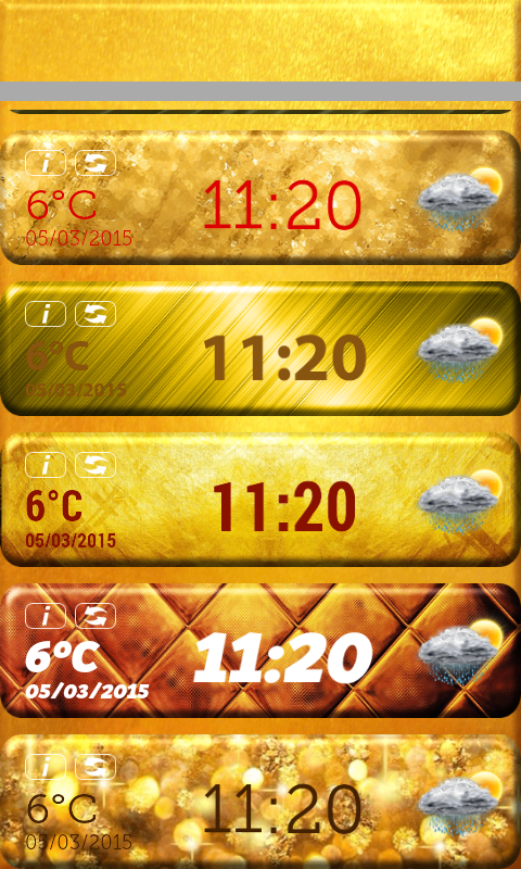 ★Gold Clock Weather Widget ★ is the most beautiful widget for your mobile! Want to have a cute and fashionable clock on your screen? Golden jewels in different shapes fall on your background. So Sparkly! So Shiny! A clock widget that displays the time, the date and even the weather offers different color themes to choose from. Enjoy the beauty of gold with this stunning “Gold Clock Weather Widget”. 10 digital clocks that show the weather forecast, 5 unlocked and 5 locked. Every day new clock is available. Put wonderful clock and weather widget on your home screen. Top widgets of different sizes and shapes. Easy to use for adults and children. Add widgets to beautify your screen. Do you love gold more than anything? Decorate your phone screen with bright, beautiful and valuable gold. This is a collection of beautiful colorful digital clocks designed especially for your mobile! ★Gold Clock Weather Widget ★, awesome clock is available now for free download! Get amazing clock widget that comes with weather forecast! Forget about weather channel. Beautiful and stylish “weather widget” for your phone is available absolutely free. Here you will get a collection of elegant and stylish clock designs as your home screen widget. You will always know current weather conditions and temperature in Celsius or Fahrenheit, so you will always know what to wear. You will enjoy amazing golden clock all over your screen! This classy gold “digital clock widget” is for everyone’s taste. See whether outside is warm and sunny, dry and cold, or whether it’s raining or snowing. Wait no more, be the first to have this magical gold widget that shine and sparkle. This is a really classy clock widget! No matter which Android™ phone you’re using ★Gold Clock Weather Widget ★ is perfect for you. This is stylish and the most beautiful gold clock widget. Need to know what are the weather conditions outside? If you are bored with your old clock, try new ★Gold Clock Weather Widget ★. They have a lot of different sizes and shapes, different colors and designs. Perfectly balanced colorful shiny clock on the screen of your phone will make you extremely happy! Check out this fabulous new widget for Android™! Widgets are interesting features for Android™ phones. They can be used to dress up your home screen! Let your digital clock sparkles with extraordinary value. Add accurate local weather forecasts to your screen. You are able to pick a location and find out the world weather. Set your favorite gold digital clock and enjoy in sparkling background. Widget that provides all weather information you need! Includes current weather conditions for selected location, the pressure, cloudiness, humidity and wind speed! Download ★Gold Clock Weather Widget ★ and provide a perfect “digital clock” for your new Samsung Galaxy mobile. Get these free widgets and free digital clocks as soon as possible. This stunning “clock widget” will amaze all the girls. Choose your favorite gold clock and cover your background. This clock widget gives stylish look to the hours and minutes of the day. *Android™ is a trademark of Google Inc. *This widget is not affiliated with or endorsed by Samsung.
