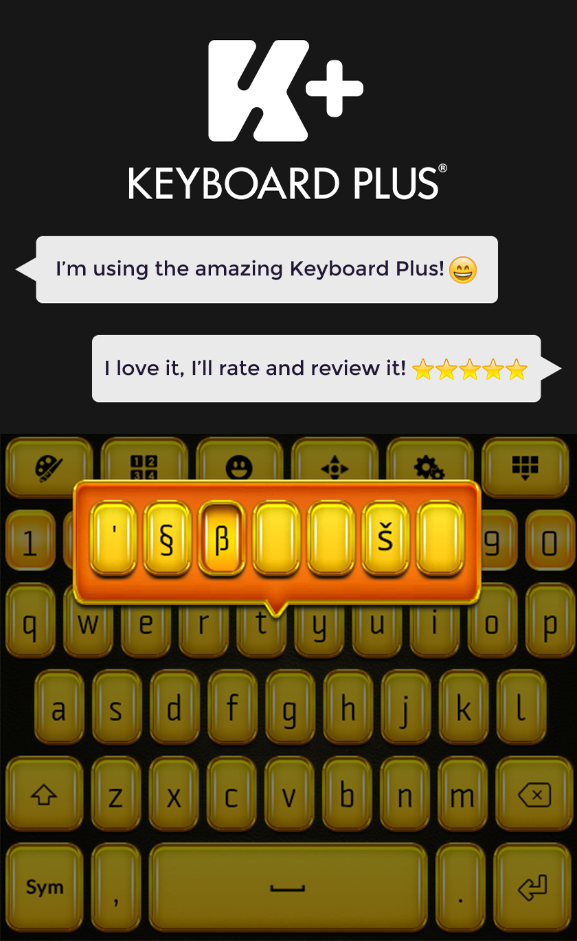 Download the new Gold Keyboard theme and feel like a celebrity ready to step on the red carpet. This gorgeous Gold Keyboard HD theme is perfect for any event, giving you an extra sparkle and a real energy boost. Be confident and a true diva, that everyone will admire with this awesome Gold Keyboard HD theme. Choose this Gold Keyboard HD theme if you like to be a winner, a leader that is strong and determined. Feel special every day with a Gold Keyboard HD look that will make you stand out. This season is all about glamor so hurry up and get right now this hot Gold Keyboard HD theme.