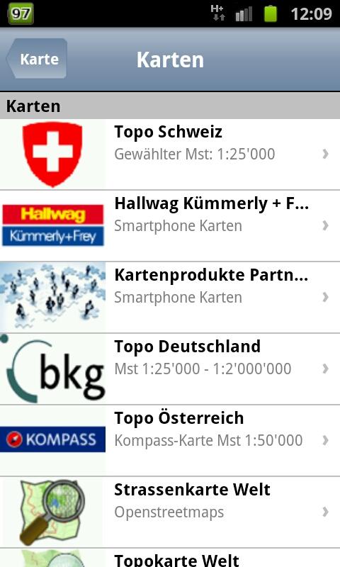2) New additional layer with all Swiss cycling routes cycling in Switzerland. The color corresponds to the slope of the path: Green: 0 - 3.5% Yellow: 3.5 - 7% Red: 7 - 10.5% Dark: 10.5 - 14%. 3) Germany-Topo maps can be reupholstered without registration for offline use.