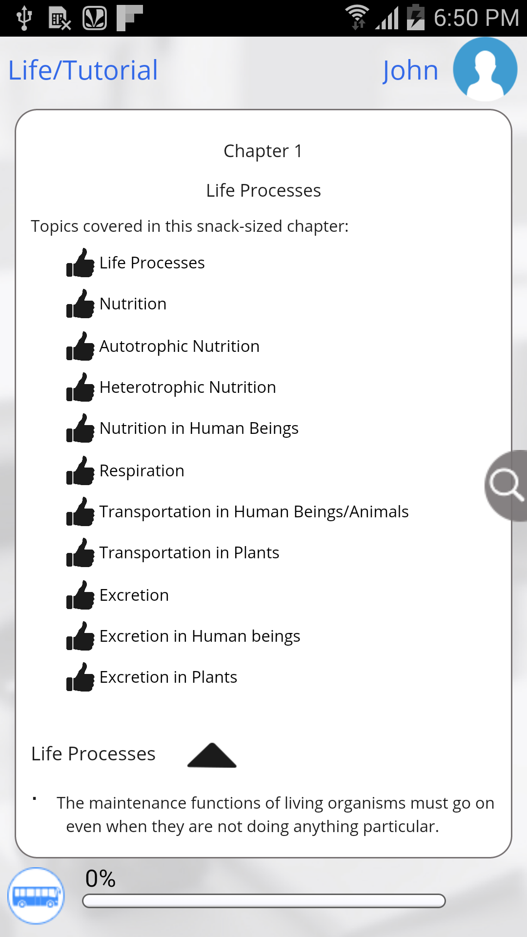 You have limited access to the content provided. For full access to the content, please login and purchase this application. This app provides a quick summary of essential concepts in Grade 10 Biology by following snack sized chapters:
