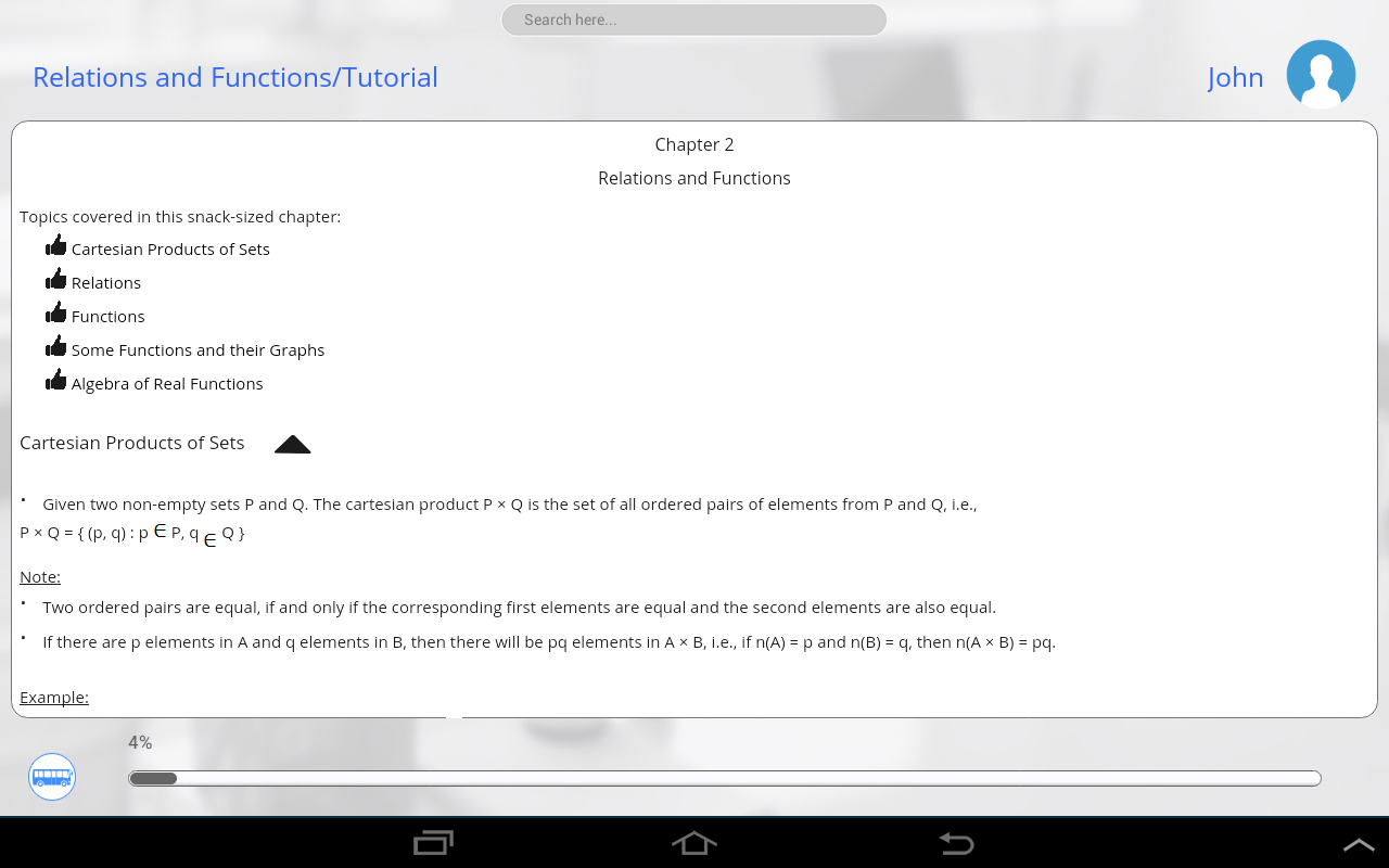 You have limited access to the content provided. For full access to the content, please login and purchase this application. This app provides a quick summary of essential concepts in Grade 11 Math by following snack sized chapters: