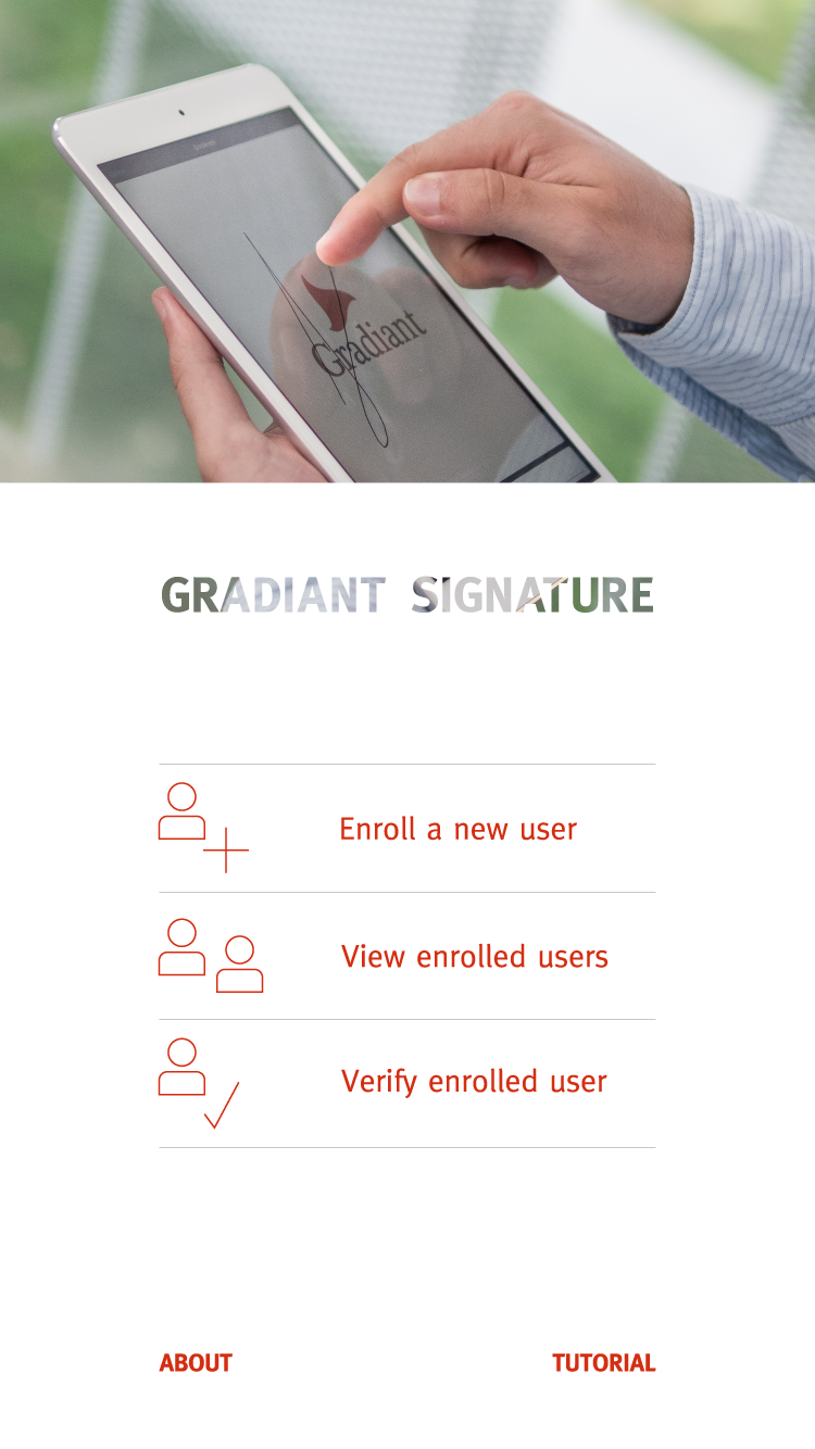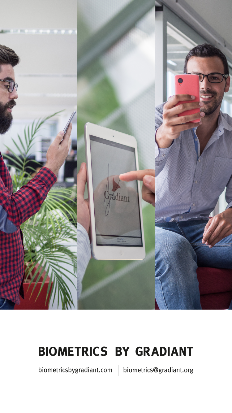 This application shows GRADIANT SIGNATURE's technology for biometric verification. The SDK is available for developers. Please, contact us for more information: [email protected]