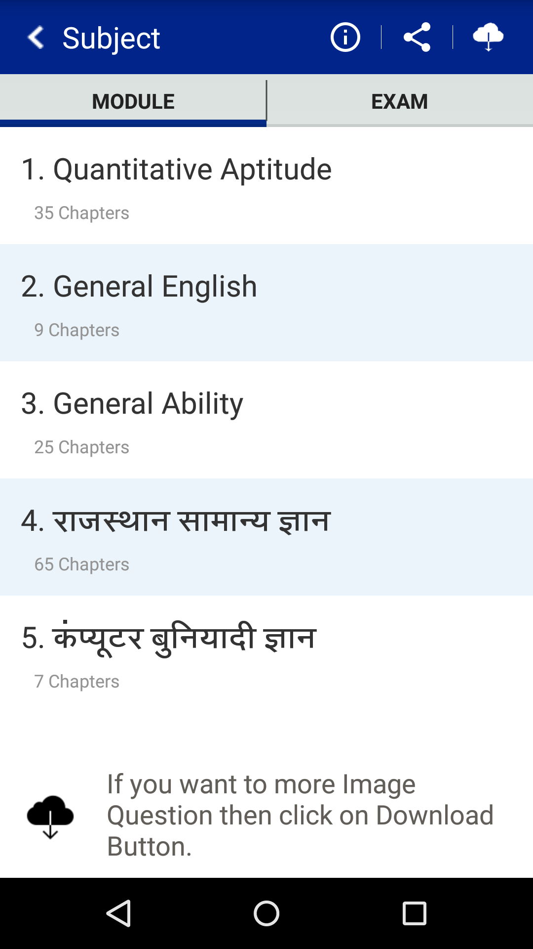 Gram Sevak Exam Preparation, 20000+ Question answer Quantitative Aptitude ------------------------------ Numbers H.C.F & L.C.M of Numbers Decimal Fractions Simplification Square roots & Cube Roots Average Problems on Numbers Problems on Ages Surds & Indices Percentage Profit and Loss Ratio and Proportion Partnership Chain Rule Time and Work Pipes and Cisterns Time and Distance Problems on Trains Boats and Streams Alligation or Mixture Simple Interest Compound Interest Logarithms Area Volume and Surface Area Races and Games of skill Calendar Clocks Stock and Shares Permutations and Combinations Probability True Discount Bankers Discount Heights and Distances Odd Man Out And Series ------------------------------------- General English ------------------------------------- Comprehension Sentence Completion Spotting Errors Improvement of Sentences Rearrangement of Sentences Spelling Errors Synonyms Antonyms Idioms and Phrases ------------------------------------- General Ability ------------------------------------- Analogy Classification Series Completion Coding-Decoding Blood Relations Puzzle Test Sequential Output Tracing Direction Sense Test Logical Venn Diagrams Alphabet Test Number Ranking & Time Sequence Test Mathematical Operations Logical Sequence of Words Arithmetical Reasoning Inserting the Missing Character Data Sufficiency Decision making Assertion and Reason Situation Reaction Test Verification of Truth of the Statement Statement-Arguments Statement-Assumptions Statement-Courses of Action Statement-Conclusions Non-Verbal Reasoning राजस्थान सामान्य ज्ञान ------------------------------------- भौगोलिक परिदृश्य जलवायु मिट्टियाँ अपवाह प्रणाली वन सम्पदा राष्ट्रीय पार्क,अभयारण्य राज्य प्रतीक पशु सम्पदा कृषि एवम फसले खनिज सम्पदा औद्योगिक परिदृश्य ऊर्जा संसाधन प्राकृतिक तेल एवम् गैस सहकारी तन्त्र परिवहन पर्यटन जनसंख्या एवम् साक्षरता राजस्थान का आर्थिक परिदृश्य पंचवर्षीय योजनाये विकासात्मक कार्यक्रम एवम् योजनाये शिक्षा एवम शिक्षण सँस्थाए खेलकूद राजस्थान का प्राचीन एवम् मध्य कालीन इतिहास किले/दुर्ग स्वाधीनता संग्राम में राजस्थान प्रजामंडल समाचार पत्र,पत्रिकाएँ,पुस्तके संस्थाए,सम्मलेन,सभा प्रमुख व्यक्तियों के उपनाम राजस्थानी जनजीवन से सम्बन्धित शब्दावलीयां जिलेवार वस्तुनिष्ठ प्रश्नोत्तर उद्यान विज्ञानं आयोजना राजवंशो की प्रशासनिक व्यवस्था स्वतंत्रता संग्राम स्वतंत्रता सेनानी किसान आन्दोलन एकीकरण जातियां एवम् जनजातियाँ जन जीवन शब्दावली लोक देवता लोक देवियाँ संत एवम सम्प्रदाय धार्मिक स्थल चित्रकला एवम शैलियाँ मेले,पशु मेले त्यौहार रीति रिवाज़ एवम् लोक परम्पराये वेशभूषा आभूषण हस्तकला लोक संगीत/नृत्य/वाद्ययंत्र/लोक कलाकार प्रशासनिक परिदृश्य लोक नीति पंचायती राज प्रमुख योजनाये एवम विकासात्मक कार्यक्रम महिलाओं का योगदान सम्मानित व्यक्ति सम्भाग एवम जिले जैव विविधता अपवाह तन्त्र चिकित्सा एवम् स्वास्थ्य विज्ञानं एवम प्रोद्योगिकी राजस्थान के वैज्ञानिक आर्थिक संवृधि राजवंशों की राजस्व व्यवस्था कंप्यूटर बुनियादी ज्ञान ------------------------------------- Windows 7 Word Processing Spread Sheet Presentation Graphics Database Management System About Computers Internet