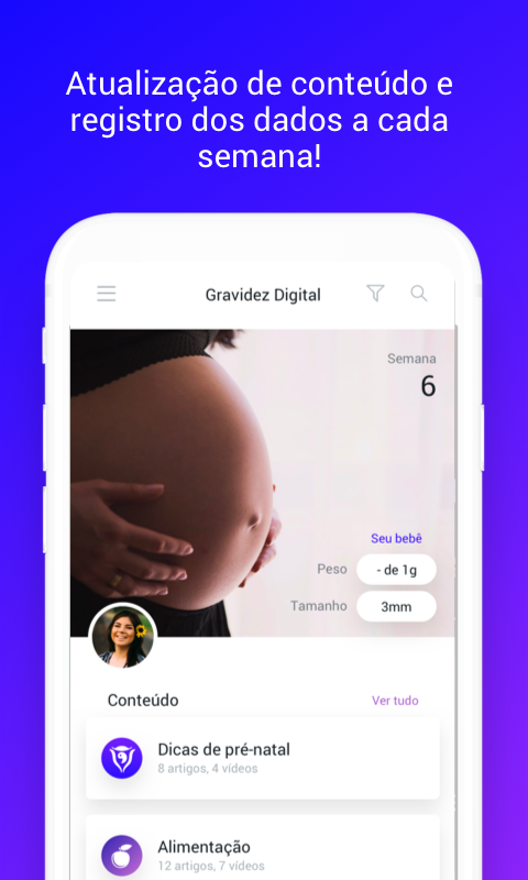Looking for a complete app with videos, articles and images with absolutely everything you need to know about pregnancy and the baby's first year of life? So, be very welcome to Digital Pregnancy! Check out what you will find in Digital Pregnancy below: >>> Track your pregnancy, week by week Enter the expected date of the baby's birth and that's it! Content that addresses the characteristics of the exact moment of your pregnancy will be displayed to you. What part of the baby's body is formed at each stage? What habits and care should be adopted to ensure the health of the mother and child? What are the myths and truths about pregnancy? These and other issues are addressed by obstetricians, gynecologists and also by moms who want to share their experiences! >>> Community It is natural for many doubts and fears to appear during pregnancy. With that in mind, we created a specific area for those who will be - or already are - mom to exchange ideas, doubts and lessons. Take advantage of our space to share learnings, tips and stay on top of the experiences of others who have passed or are going through this phase. >>> Names and meanings Haven't decided on your baby's name yet? We present a list with several names and their respective meanings! No matter if your child will be a beautiful boy or a sweet girl, we help you choose the most beautiful and interesting name! >>> Together until the first year of life Digital Pregnancy accompanies you and your child until their first birthday! In addition to the videos, articles and images prepared by experts on various topics, you also have access to a vaccine calendar to know exactly when and what prophylaxis to apply to your son or daughter. >>> Complete We understand that a healthy pregnancy involves the well-being of the baby, mom and dad. With that in mind, we present the contents separately for these three pillars. Thus, you receive precious tips on what each person goes through during the pregnancy process! Information about food (breastfeeding, baby food, mom's diet), routine exams (ultrasound, ear test, baby test, etc.), utensils (baby bottles, diapers, pacifiers, etc.), in addition to specific care with some diseases, such as the Zika virus, will be present throughout your journey in our application. [i] To find out the terms and conditions of use of the service, in addition to our privacy policy, visit: https://goo.gl/qxSv0X{/i]