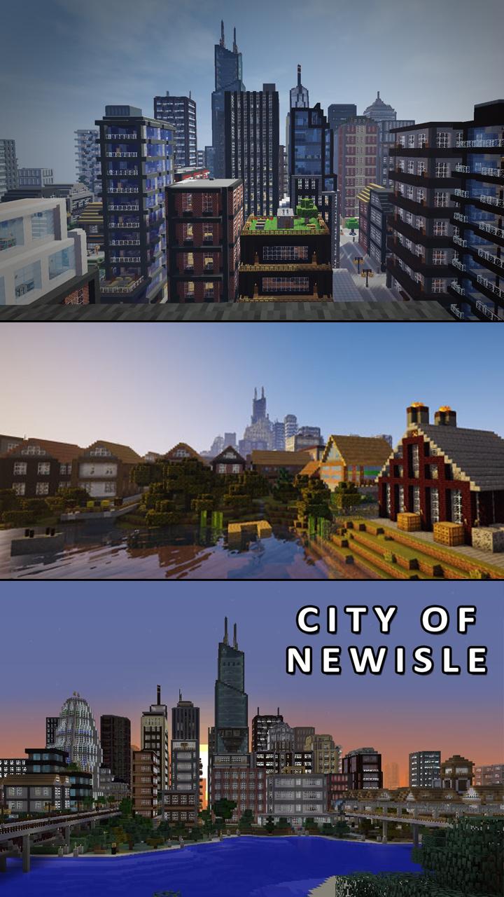 Hey! If you looking for a best minecraft maps or a minecraft mcpe maps only, if you need city maps for mcpe with a lot of big minecraft house skyscrapers or new york city map for minecraft pe or minecraft castle for medieval minecraft games for your favourite multiplayer survival games or you are a fan of adventure maps for minecraft pe or pc for singleplayer – you choose the right app! All content in our application with maps for minecraft pe and pc is divided into four useful sections, and you will find 1 map in every section, so there is 4 maps in our app: 3 mcpe map and 1 map is maded for Minecraft version 1.7.2! First map is City of Newisle for MCPE 1.1.0.+ . This map is huge and amazes you with its scale, it is one of the largest minecraft maps for mcpe. Map also contains some suburbia spaces, for those who search for mansion maps for minecraft pe Here is a ported version of the city, which contains many areas, buildings and interiors and it is one of the biggest skyscrapers and mansion maps for minecraft pe . The creator spent more than 6 years to build it and eventually it turned out a wonderful city. More than 500 ready-made buildings, inside of which you will find beautiful and unique interiors – simply the best from any minecraft city maps for pe for sure! Second Map is Future City and please be warned, this is not map for mcpe , it is maded for Minecraft 1.7.2 ! This is total monster map version is about 26MB and look at the screenshots! Real masterpiece city map for the lovers of minecraft adventure map, survival maps, single or multiplayer for minecraft at skywars map or whatever – just for everyone! You just need to see this map by your own eyes, not in pictures! Third Map is The Rykene! Stroll through the magnificent village looking like Castle Minecraft or medieval city on survival island in the middle of the vast ocean... Ships, mills, various triggers, a lot of stores, houses and stunning medieval architecture disturb the peace of your heart. For lovers of city maps for minecraft pe mixed with minecraft medieval maps theme and mcpe village maps, for those who wanted to find minecraft castle mcpe or similar theme – enjoy. Four Map in our app is… MCPE Metropolitan Industria! Metropolitan Industria is the largest city map for mcpe ever created, featuring over a million blocks placed over two years and well over a hundred hours spent building. With over 60 scale model skyscrapers and detailed infrastructure placed all around the map, spend countless hours exploring, playing, and blowing things up. All maps is minecraft mods free – you don’t need any mods for minecraft pe or pc to install and use maps. But you can use any minecraft mod with this maps, you just need to find mods for minecraft pe that work with this maps, look for some free mods for minecraft pe and try, if you want. If you look for a map editor, you don’t find it in our app too.If you were looking for minecraft cheating, you also will not find the minecraft cheats here! Quit cheating! Warning: Great Minecraft City Maps is an unofficial application. All rights reserved. In accordance with http://account.mojang.com/documents/brand_guidelines
