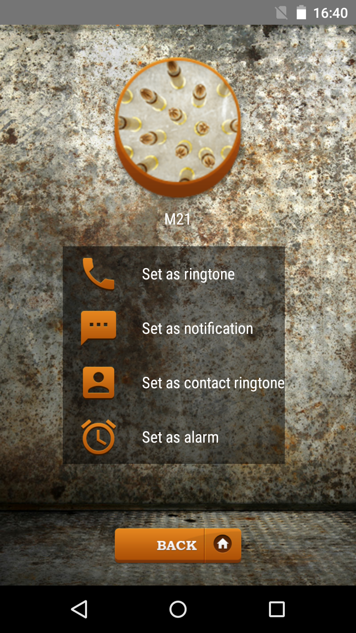 True and noble weapon lovers-there is finally a way to express your funny side too…Enter the world of loud and cool ringtones with these crazy-fun Gun Shot Sound Effects. There is something for everyone’s taste, roaring SMS notifications, amusingly loud ringtones and energizing alarm sounds. If you like banging sounds of pistols, rifle, machine gun and shotgun you will absolutely adore new Gun Shot Sound Effects. Get the chance to startle your friends with crazy explosion sounds that will come out your smartphone every time you get an SMS message or someone calls you.Great new app brings awesome selection of the most amazing earsplitting ringtones you can imagine! * All ringtones are preloaded inside the app and FREE to use. * Set as ringtone, SMS/e-mail notification, alarm sound or assign as ringtone to specific contact in your contact list(PRESS AND HOLD PLAY). * Easy to use UI, Gun Shot Sound Effects App works in landscape and portrait mode, optimized for all tablets and smartphones. * Top new ring tones and SMS sounds! * Share your favorite sounds via social networks using the simple SHARE button. Gun Shot Sound Effects like these will definitely draw everyone`s attention when your phone rings! You can assign different bang sound from this blasting weapon effect soundboard to each contact from your phone. This cool app with the most amazing SMS notification tunes, thundering alarm sounds and shattering ringtones is available for free download, so don’t hesitate and check it out now! “Gun Shot Sound Effects” are the best way to show how insanely funny you are! You will have a blast with your friends every time your phone goes on! Gun Shot Sound Effects is a great new app that is going to wake the hunter inside of you. If you passionately enjoy the loud sounds of rifles, shotguns, machine guns, grenade explosions and other gunfire sounds, you will love new Gun Shot Sound Effects. Everyone around you will look for cover whenever your phone rings. Gun Shot Sound Effects is the most popular new app for your Samsung Galaxy or any other of your pet devices using Android™! There is no better way to pull a prank on your friends than with some crazy explosion sounds that your telephone will produce anytime someone tries to reach you. It is a loud and amusing way to get your daily dose of fun with these crazy new blasting ringtones! These free “loud tunes” bring to you fantastic selection of earsplitting message tones, deafening alarm sounds and the best blasting ringtones! Download it now and check it for yourself! Don’t wait to hear the bang on your friend’s phone – be the first to have this cool app with the best and loudest gunshot ringtones you can imagine! Feel free to contact us for any questions or feedback.