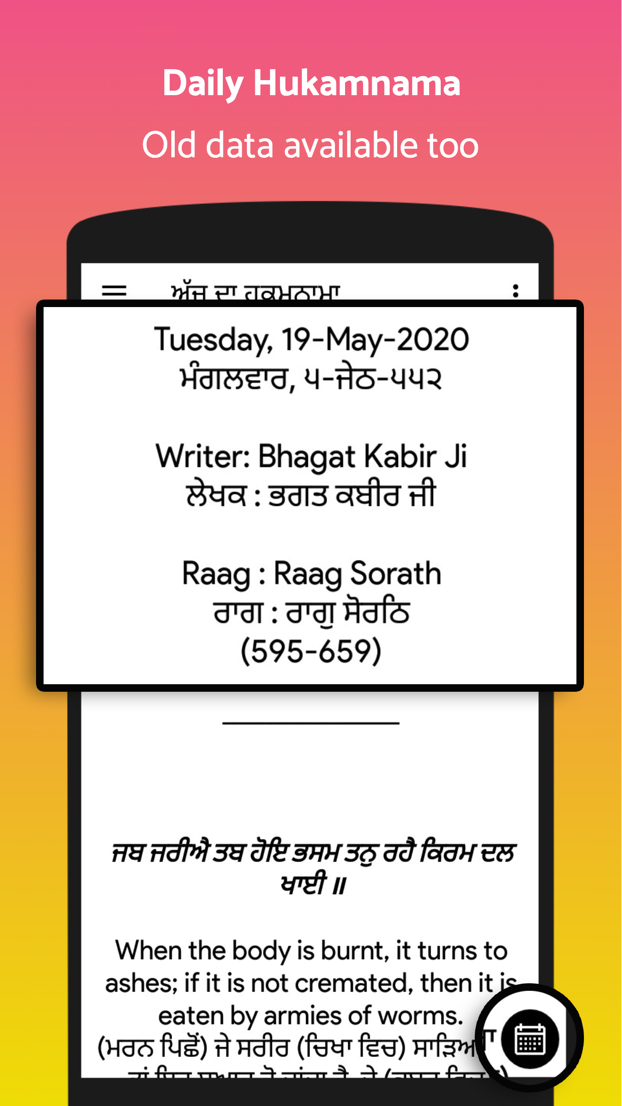 Sundar Gutka Sahib ( गुटका साहिब, गुटखा ) & nitnem is one of the best apps which contains all the nitnem, nitnem audio. You can read Nitnem 'in Hindi' or 'in Punjabi' and can read the meaning of path while reading or listening to 'Nitnem Audio'. The purpose of this app is to let the busy and mobile young generation reconnect with Sikhism and "Gurubani" by reading the path on mobile. App have Nanakshahi Calendar 2020-2023 with all Sikh events dates.