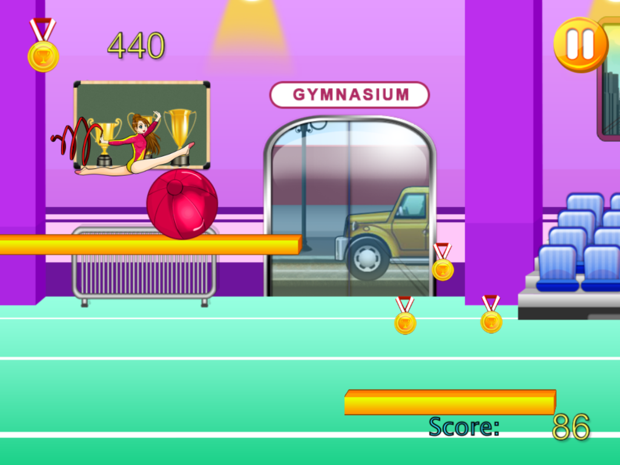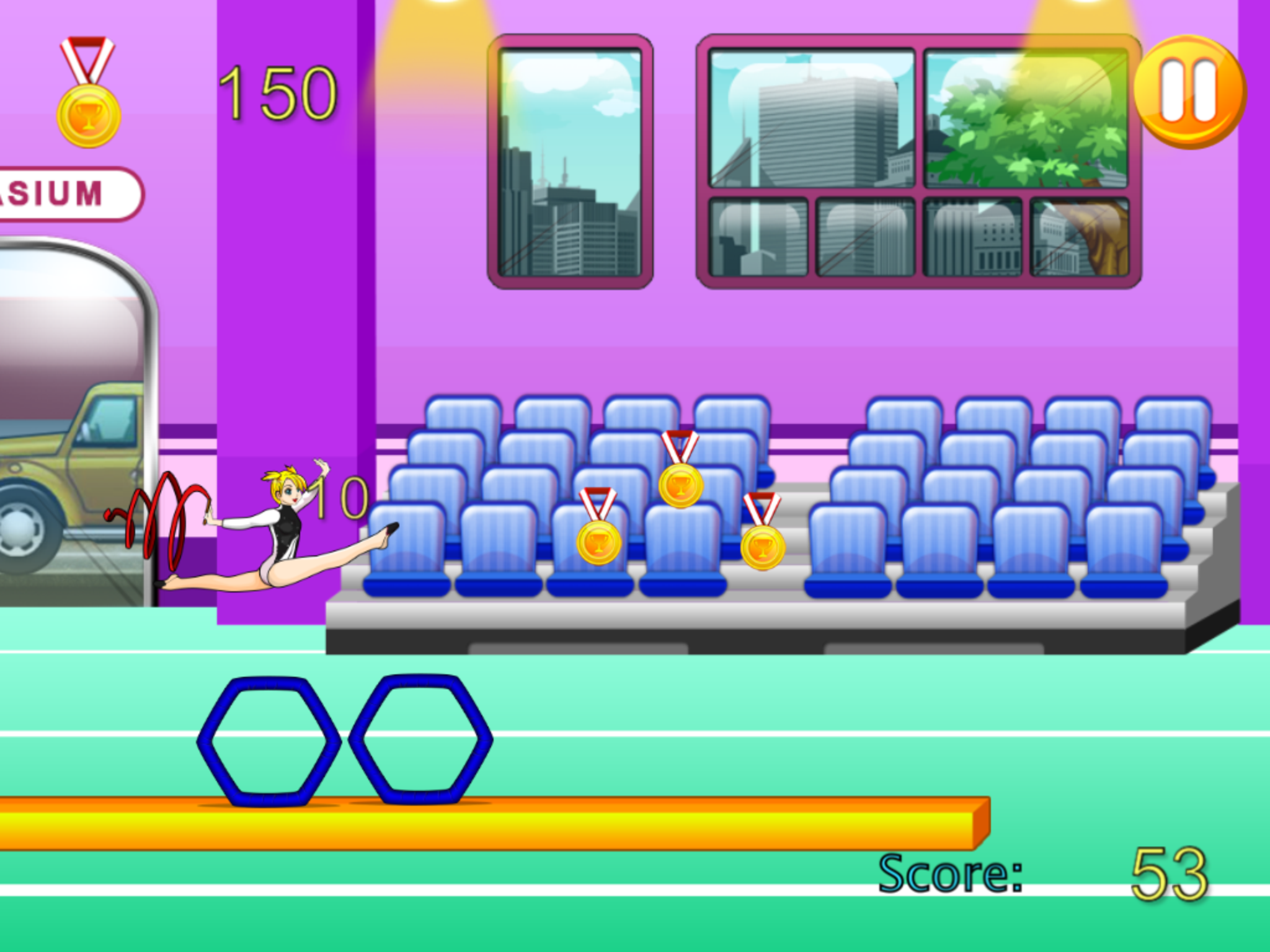 ***Best Sport and Rhythmic Gymnastics Ribbon Game in the store !*** Rhythmic gymnastics is a sport that combines elements of ballet, gymnastics, dance, and apparatus manipulation. The victor is the participant who earns the most points, determined by a panel of judges, for leaps, balances, pirouettes (pivots), apparatus handling, and execution. The choreography must cover the entire floor and contain a balance of jumps, leaps, pivots, balances and flexibility movements. Each movement involves a high degree of athletic skill. Physical abilities needed by a rhythmic gymnast include strength, power, flexibility, agility, dexterity, endurance and hand-eye coordination. Hello girls ! Gymnastics Ribbon is not just dancing with Ribbons. The compulsory elements for the ribbon include flicks, circles, snakes and spirals, and throws. It requires a high degree of co-ordination to form the spirals and circles as any knots which may accidentally form in the ribbon are penalised. During a ribbon routine, large, smooth and flowing movements are looked for. Now, How good are you in gymnastics? and how fast can you run? Show your skills and talents on gymnastics while avoiding obstacles as you Run, Jump and dancing with your ribbons without hitting all the obstacles and run all your way to the championship! Show of your flexibility, running skills and balance and coordination to your friends, Beat their highest scores and be the best champion gymnasts in the world! Girls, boys and everybody will Love this game. Learn more about gymnastics and master all the different flips, jumps running style. Choose your favorite gymnasts, beat all levels and win the championship. Gymnastic Game is a free top sporty game that features: - Incredible sporty gymnastic runner gameplay. - Very easy to play, just tap to jump. - This game will definitely make you love sports and gymnastics even more. - Very fantastic game for girls and boys and kids of all ages. - Cool sounds and graphics - Free to play and download