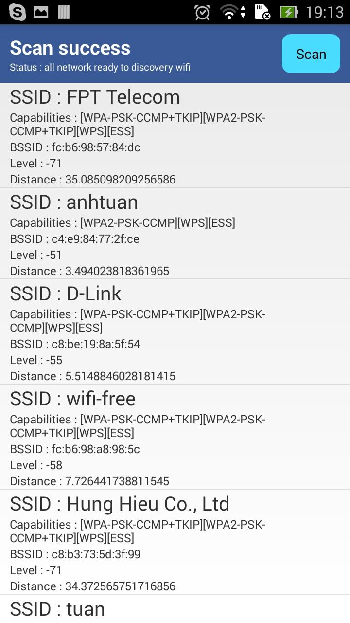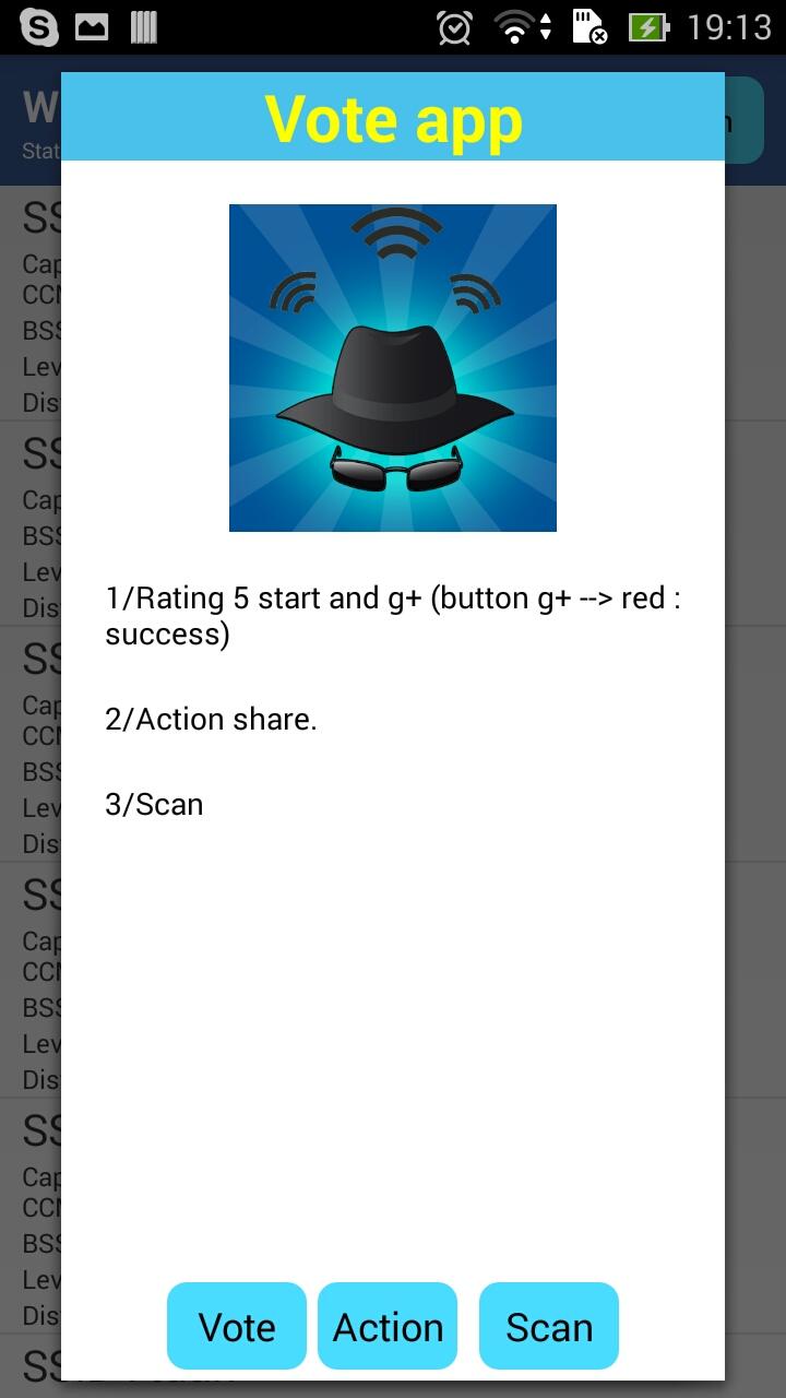 "Hack wifi" is a scan password tool. It generates wireless password very fast and easily, brings convenience to you. How to use? 1/ Scan any wifi available around you. 2/ Choose a wifi network available. 3/ Run the app to generate passwords. Now, show this application to your friends. Your friends will be said that : "You are a hacker!". Contact to me if you have any question : [email protected] Thank you for choosing our app!